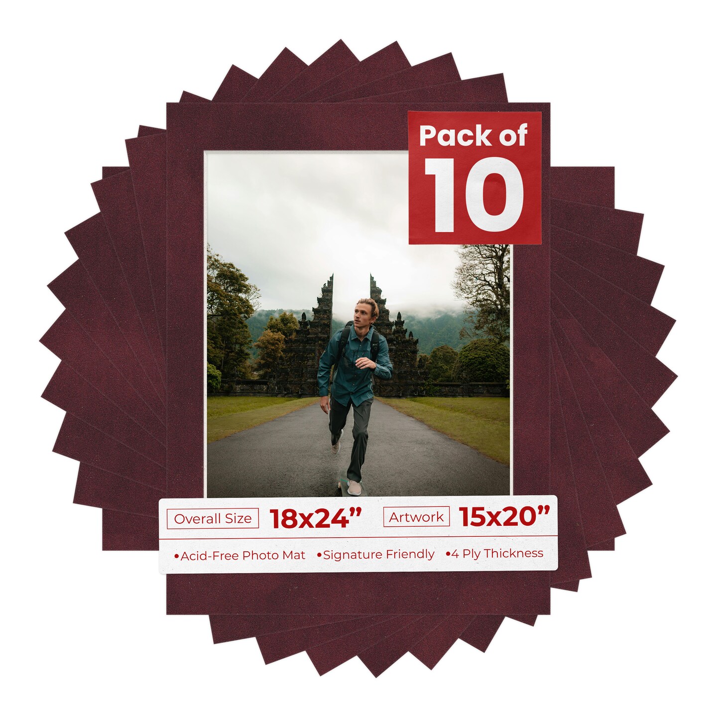 Dark Red Suede Mat Board for 18x24 Frames - Fits 15x20 Photos