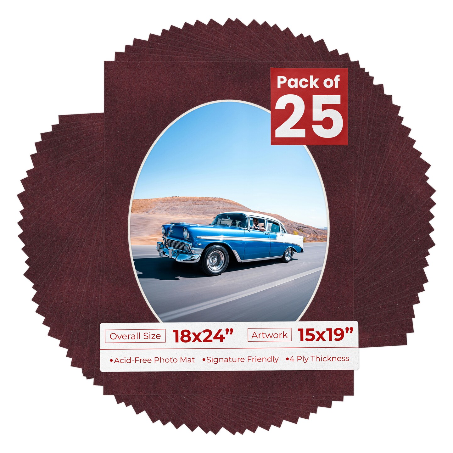 Dark Red Suede Mat Board for 18x24 Frames - Oval Opening for 15x19 Photos
