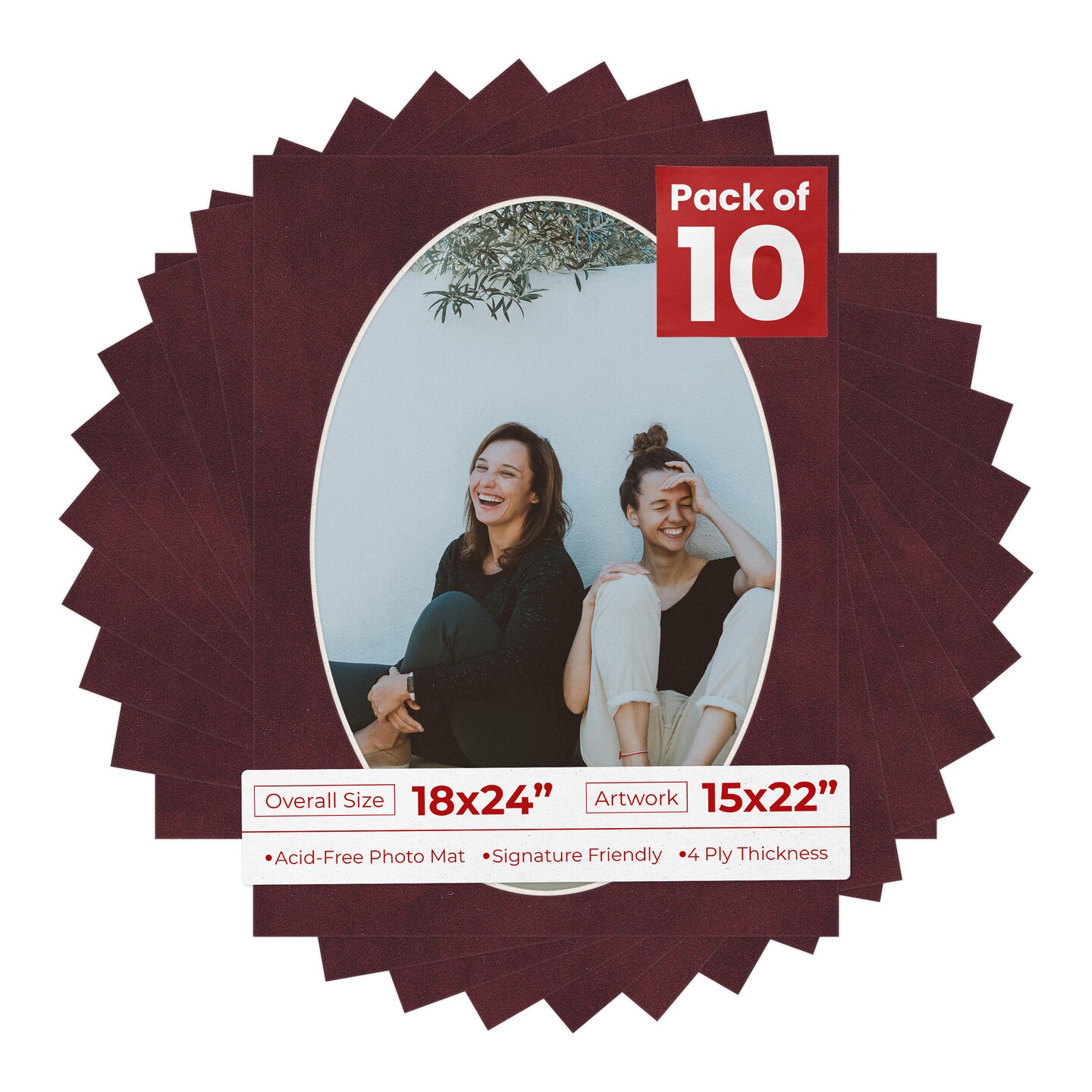 Dark Red Suede Mat Board for 18x24 Frames - Oval Opening for 15x22 Photos