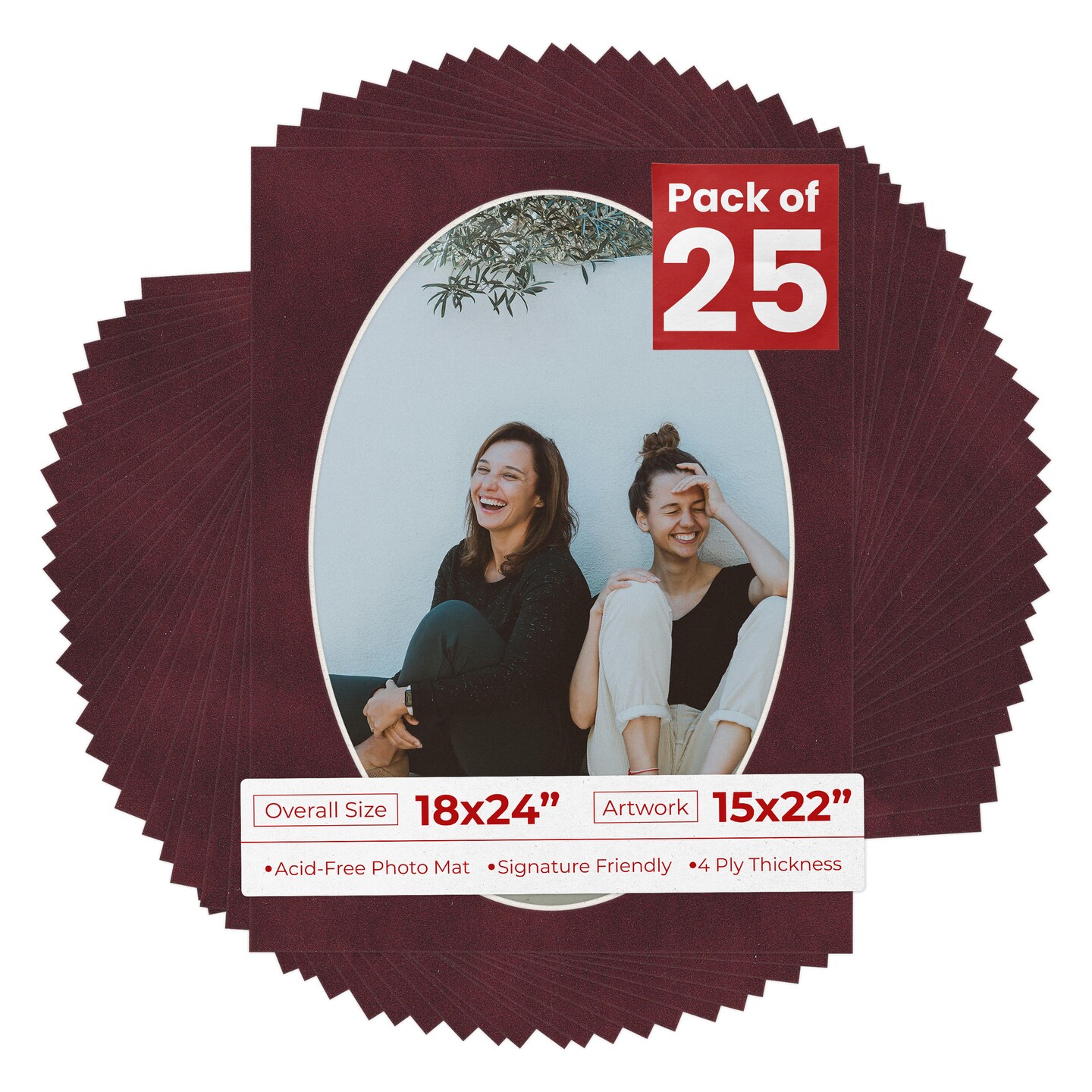 Dark Red Suede Mat Board for 18x24 Frames - Oval Opening for 15x22 Photos