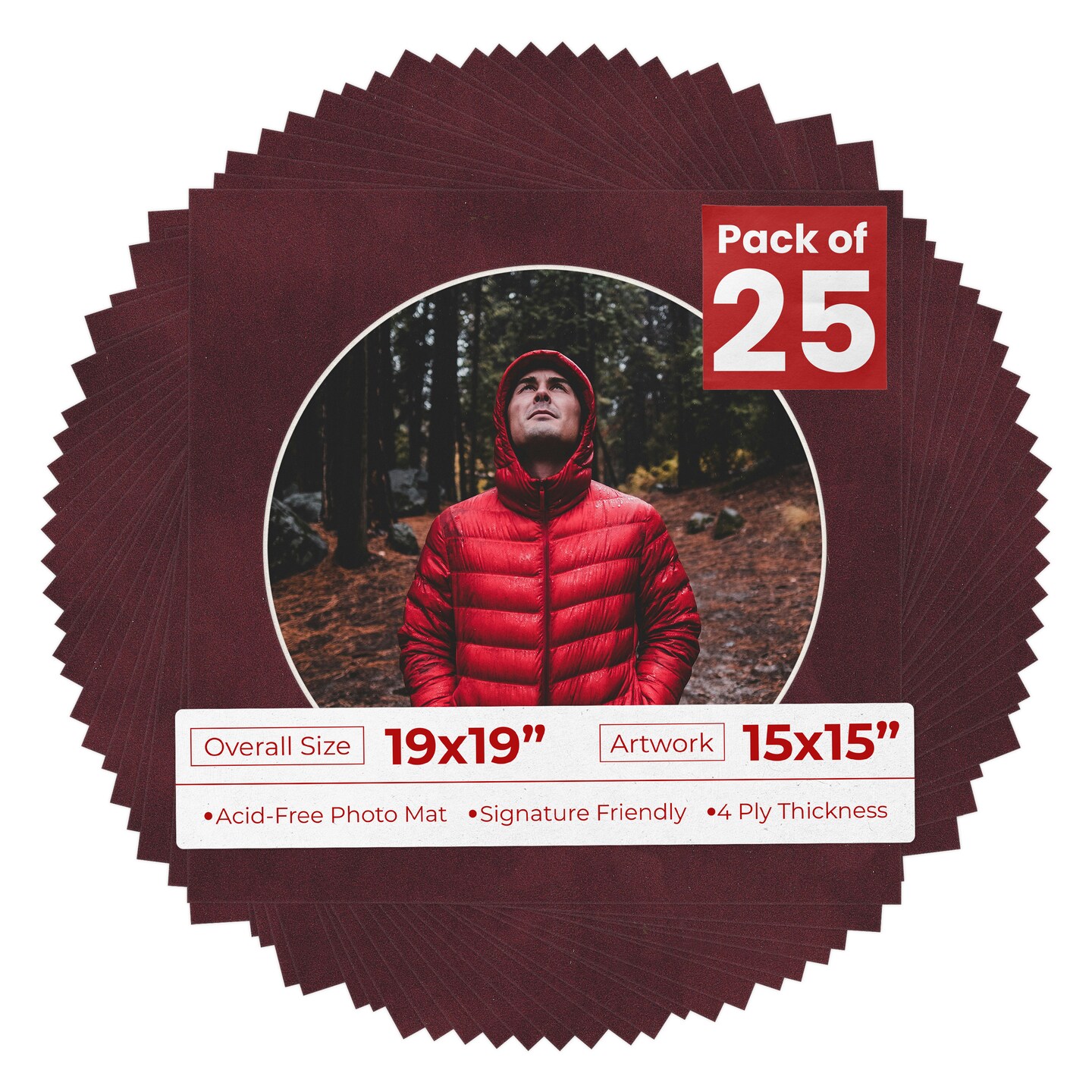 Dark Red Suede Mat Board for 19x19 Frames - Circle Opening for 15x15 Photos