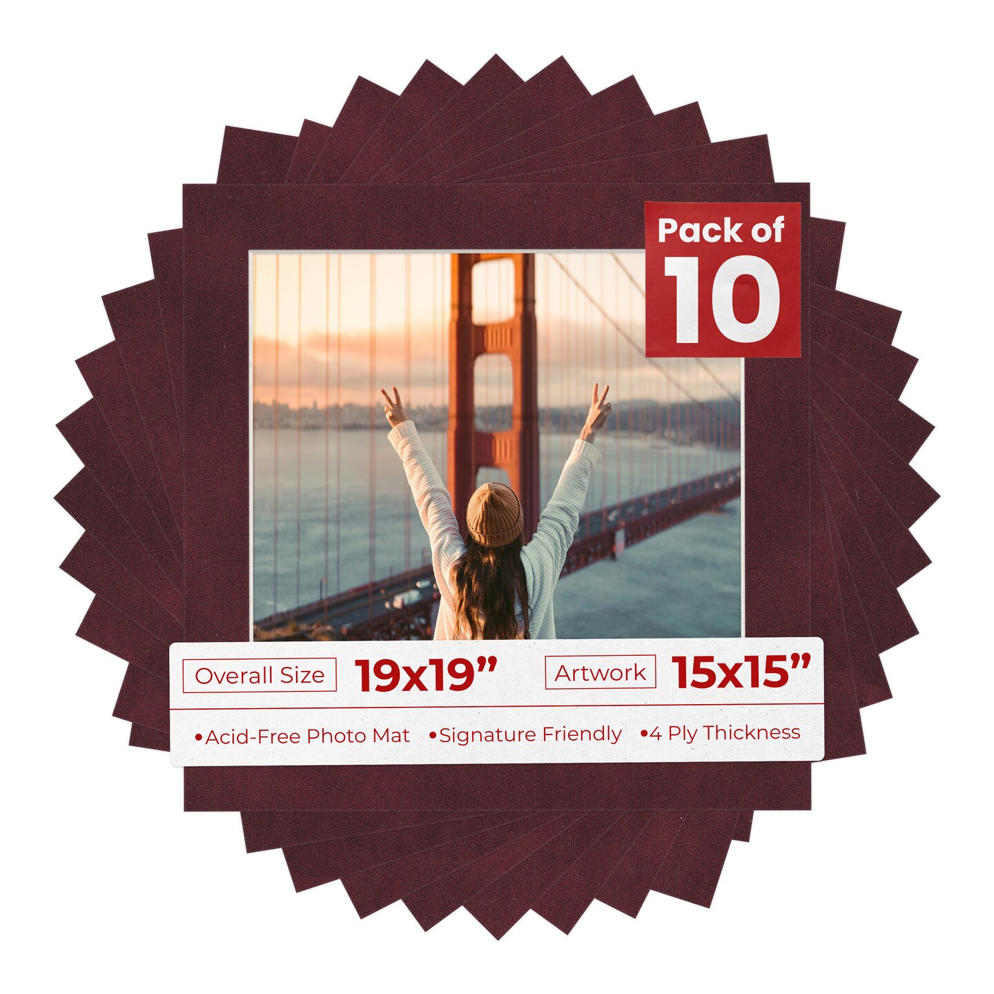 Dark Red Suede Mat Board for 19x19 Frames - Fits 15x15 Photos
