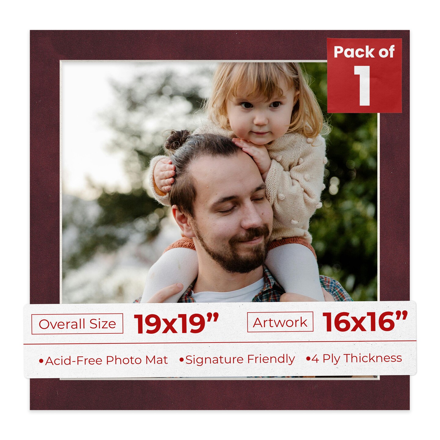 Dark Red Suede Mat Board for 19x19 Frames - Fits 16x16 Photos