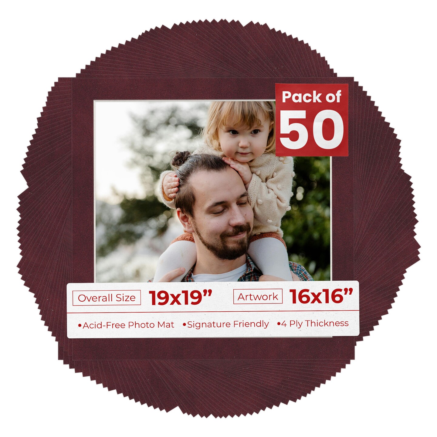 Dark Red Suede Mat Board for 19x19 Frames - Fits 16x16 Photos