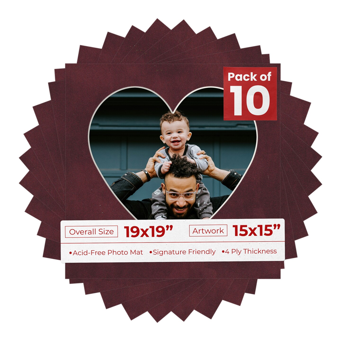 Dark Red Suede Mat Board for 19x19 Frames - Heart Opening for 15x15 Photos