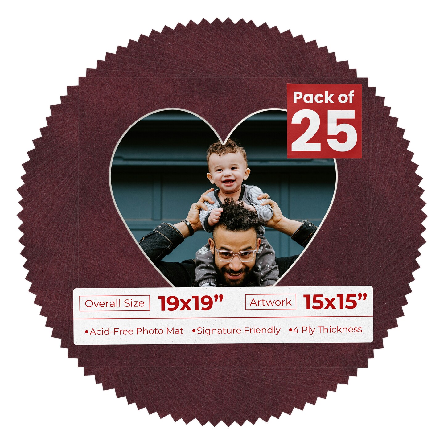 Dark Red Suede Mat Board for 19x19 Frames - Heart Opening for 15x15 Photos