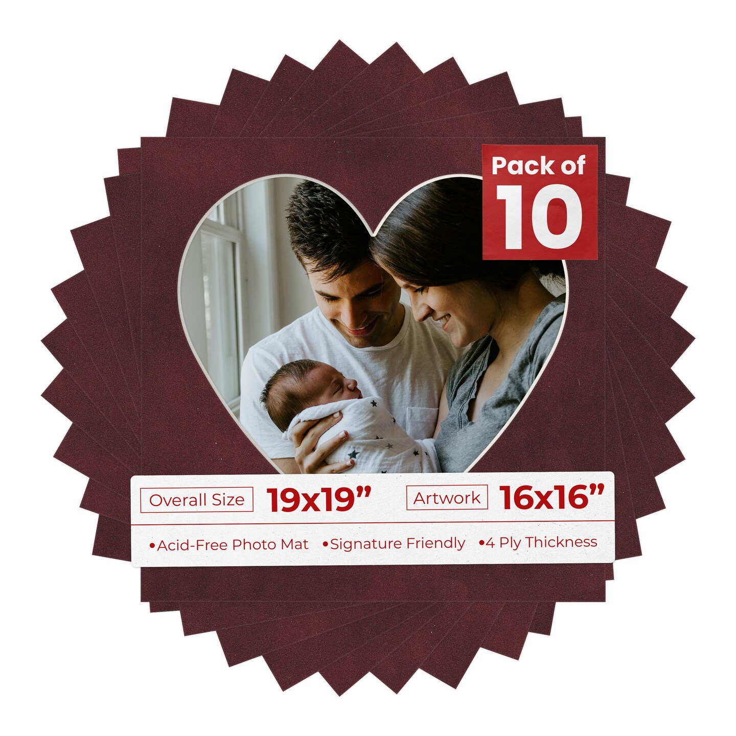Dark Red Suede Mat Board for 19x19 Frames - Heart Opening for 16x16 Photos