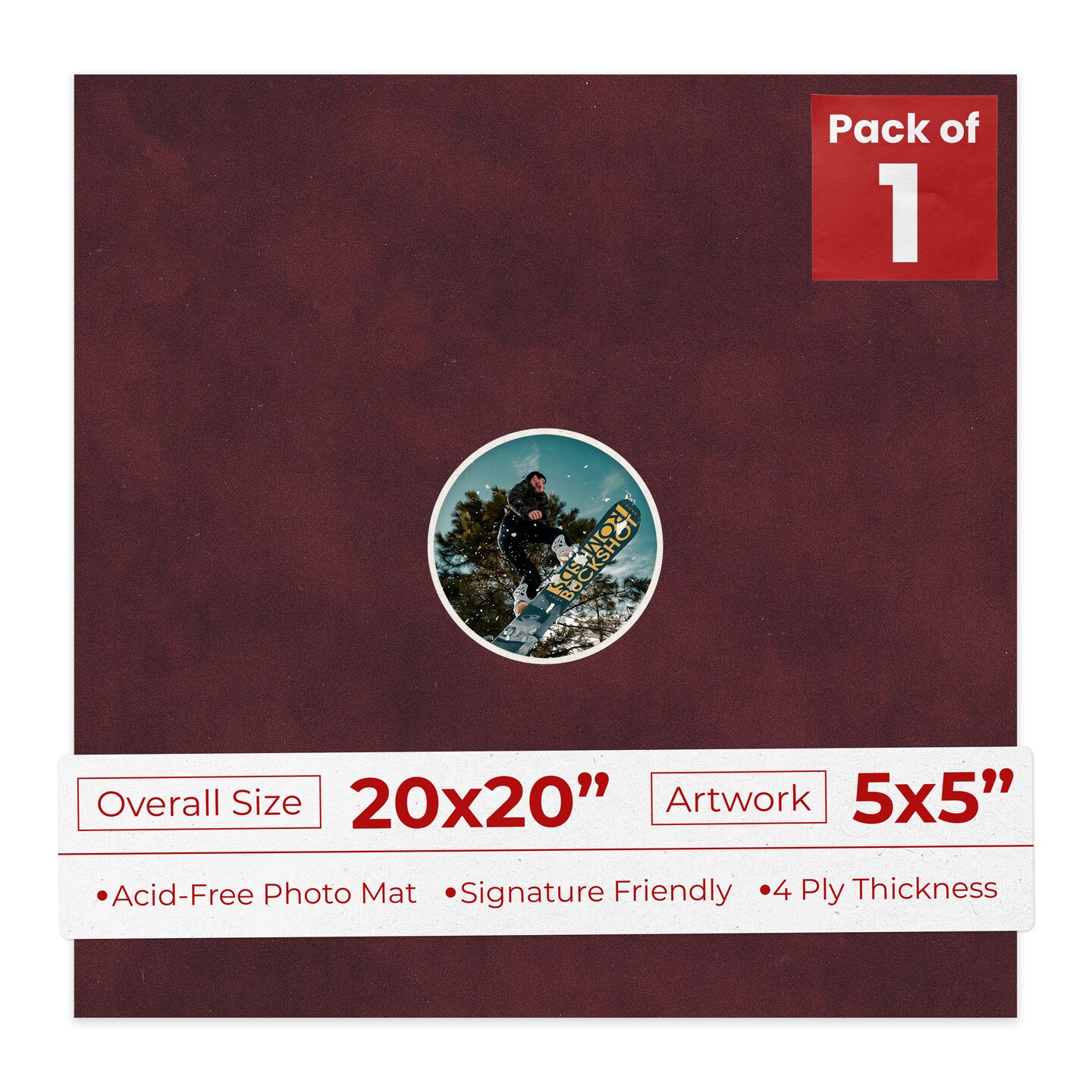 Dark Red Suede Mat Board for 20x20 Frames - Circle Opening for 5x5 Photos