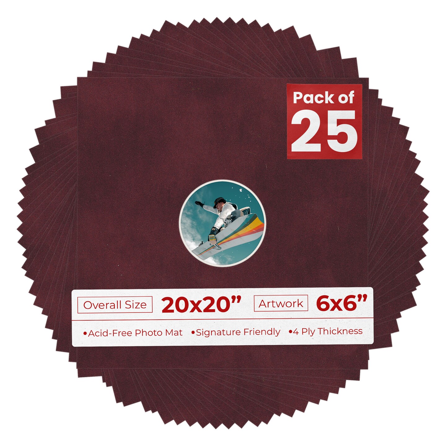 Dark Red Suede Mat Board for 20x20 Frames - Circle Opening for 6x6 Photos