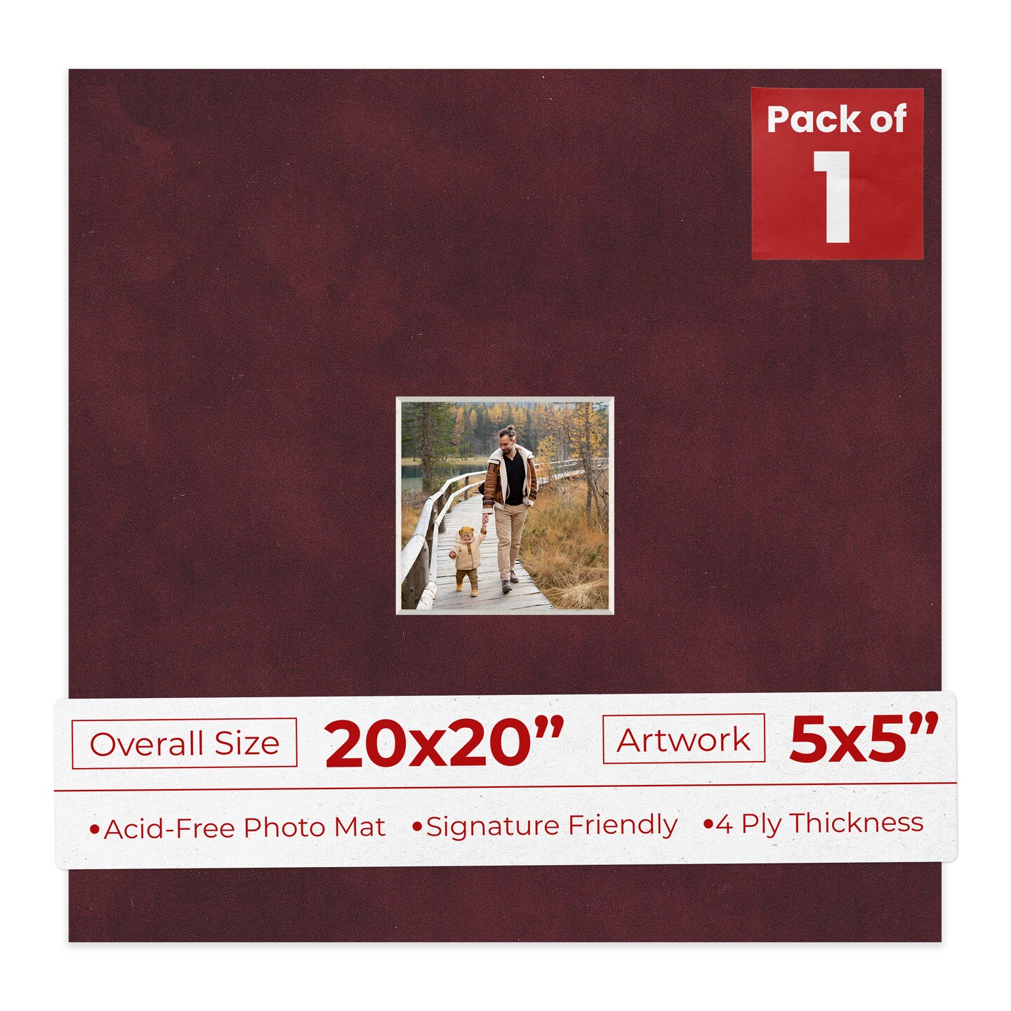 Dark Red Suede Mat Board for 20x20 Frames - Fits 5x5 Photos