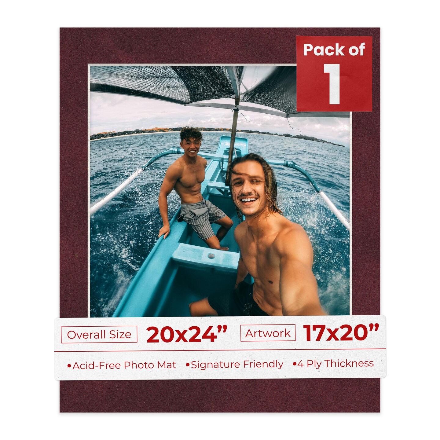 Dark Red Suede Mat Board for 20x24 Frames - Fits 17x20 Photos
