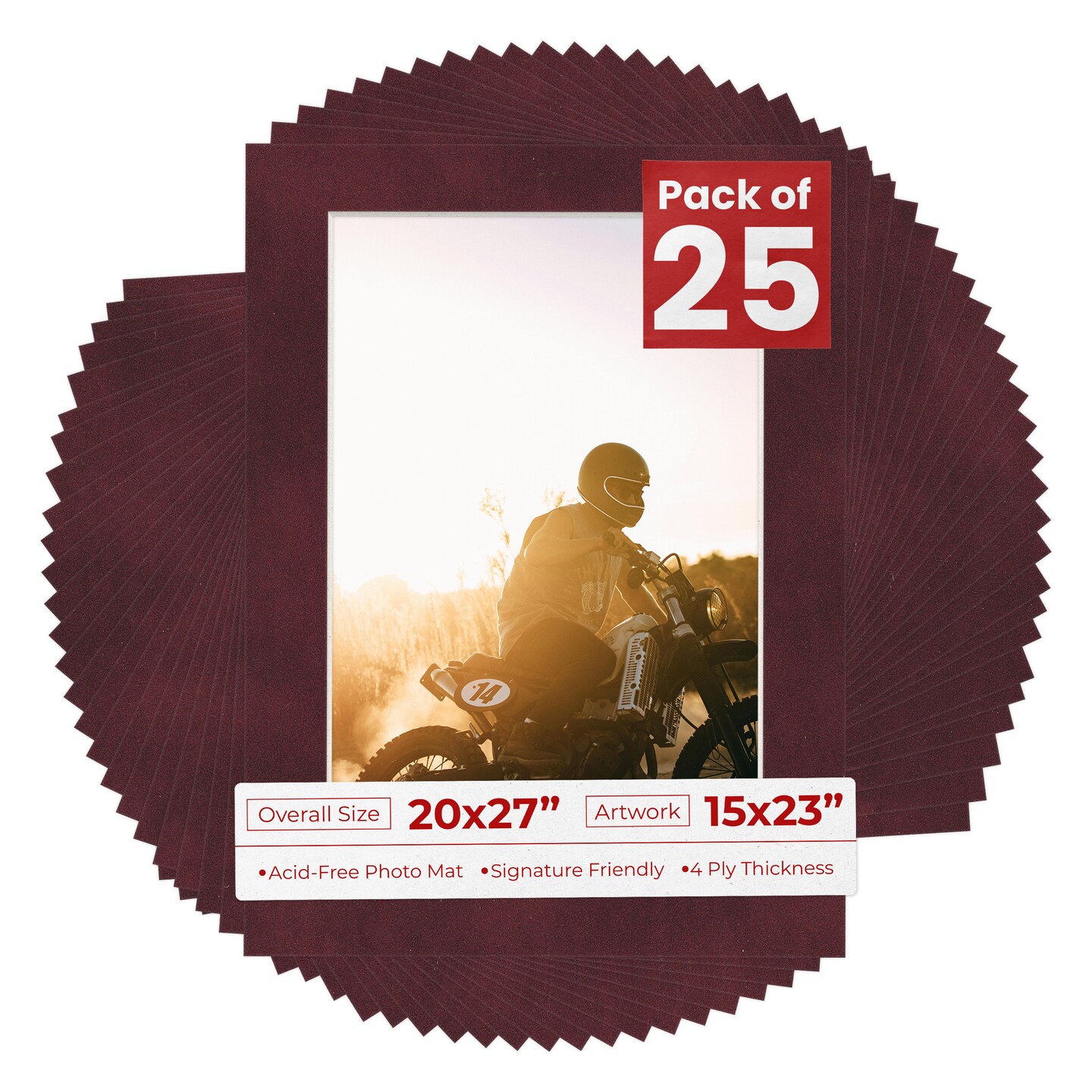 Dark Red Suede Mat Board for 20x27 Frames - Fits 15x23 Photos