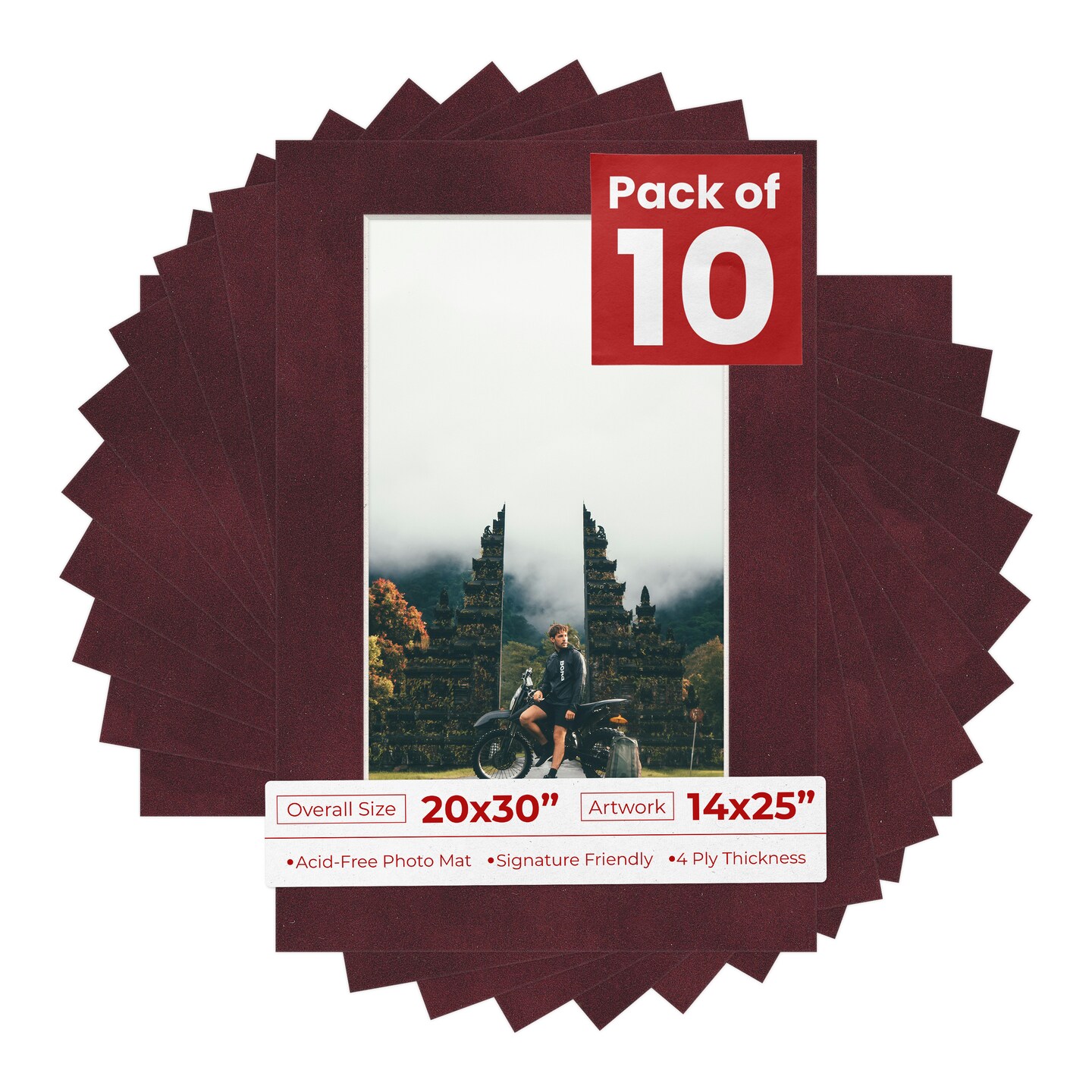 Dark Red Suede Mat Board for 20x30 Frames - Fits 14x25 Photos