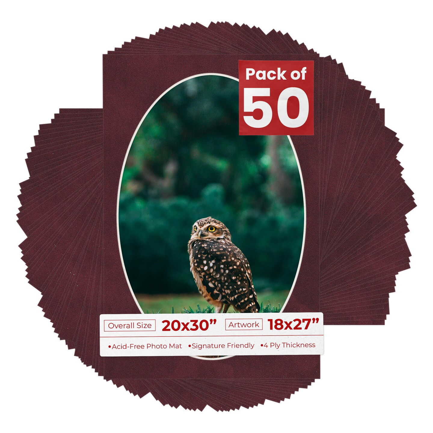 Dark Red Suede Mat Board for 20x30 Frames - Oval Opening for 18x27 Photos