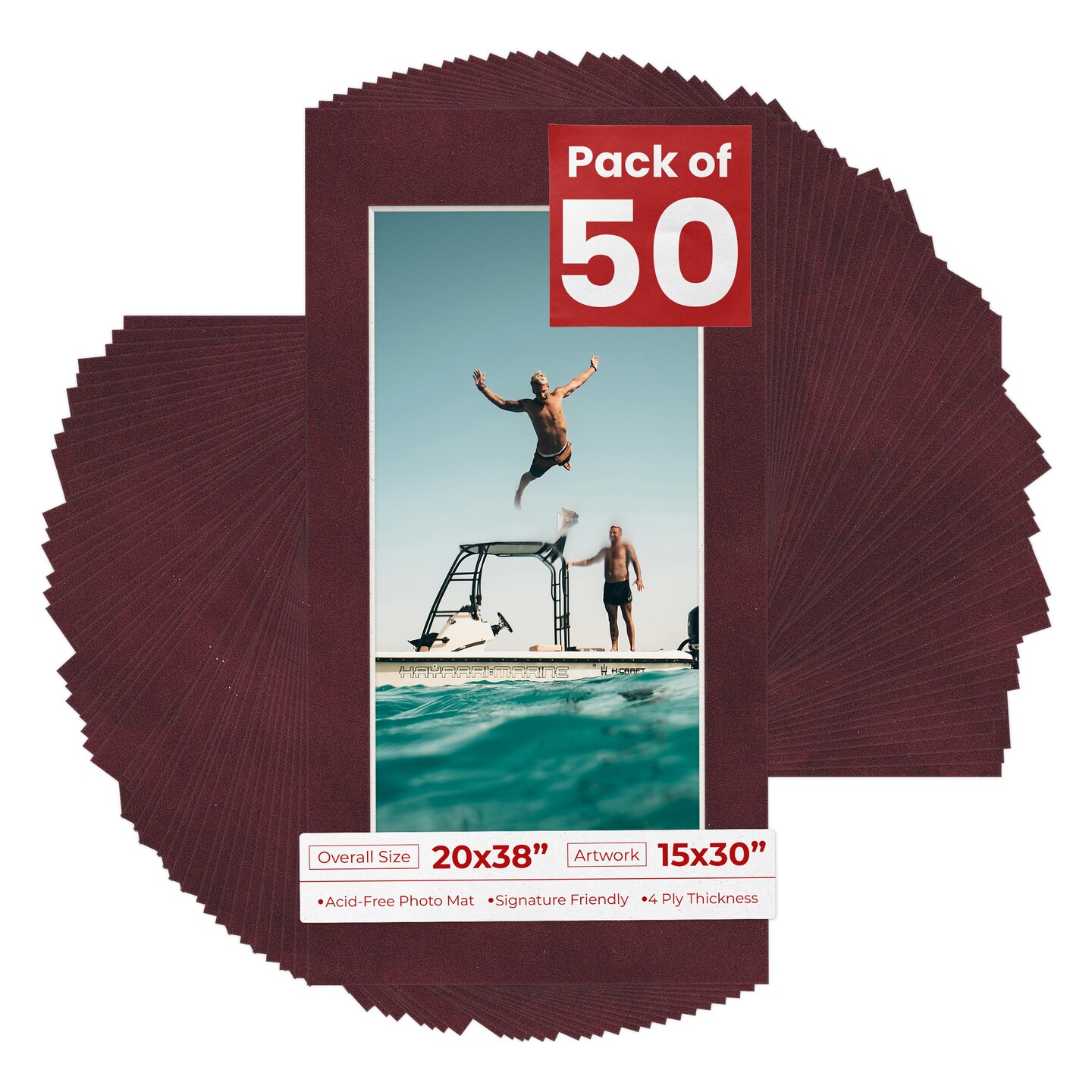 Dark Red Suede Mat Board for 20x38 Frames - Fits 15x30 Photos