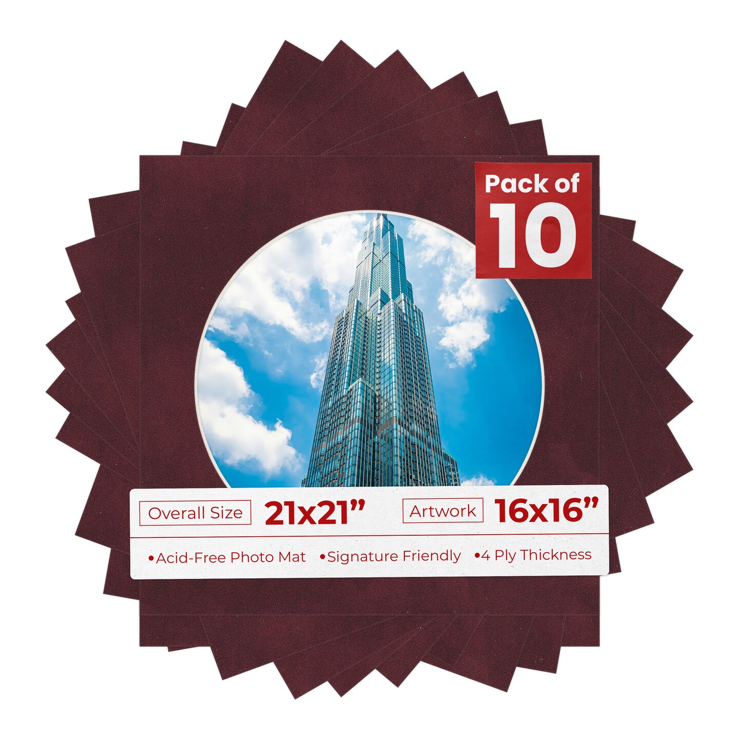 Dark Red Suede Mat Board for 21x21 Frames - Circle Opening for 16x16 Photos