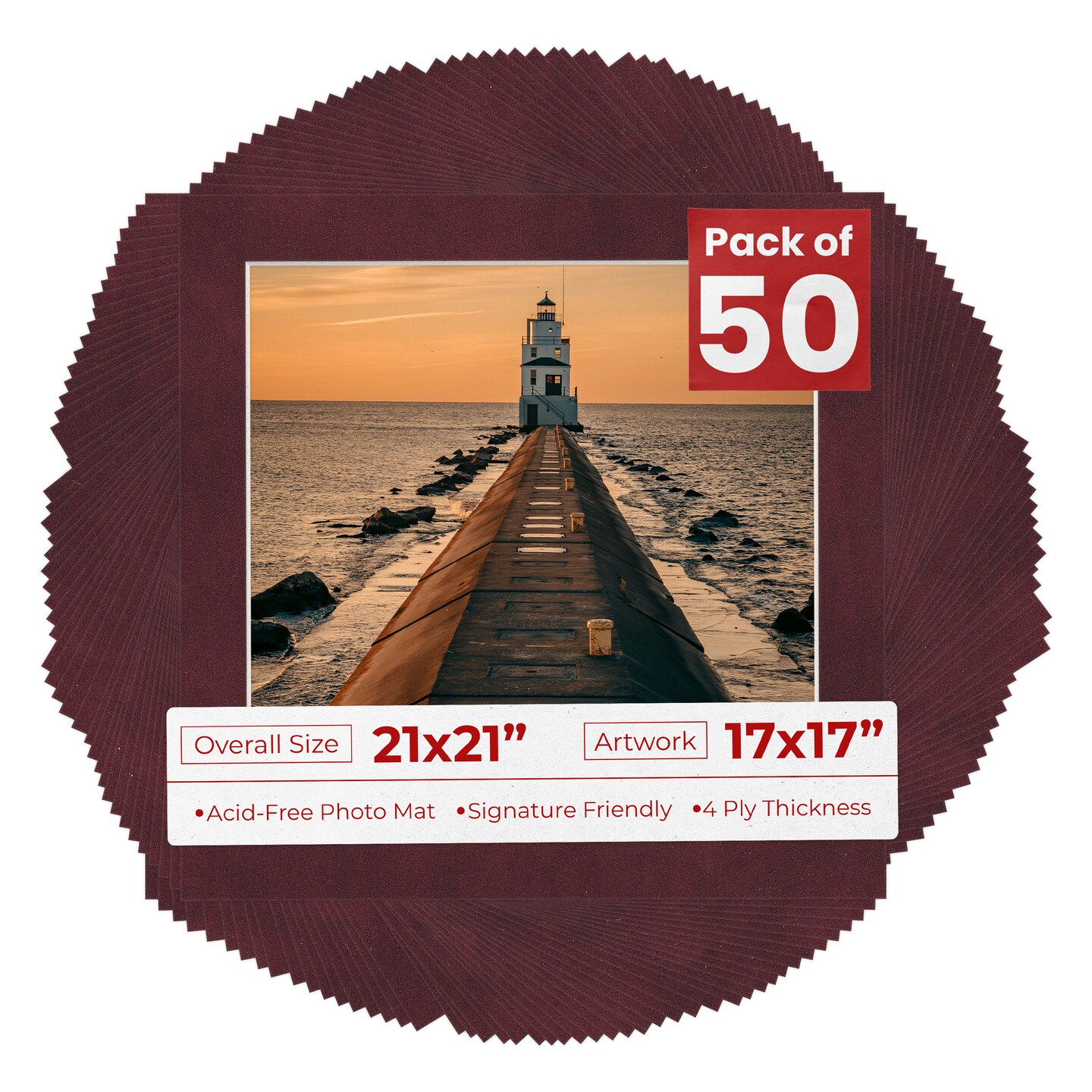 Dark Red Suede Mat Board for 21x21 Frames - Fits 17x17 Photos