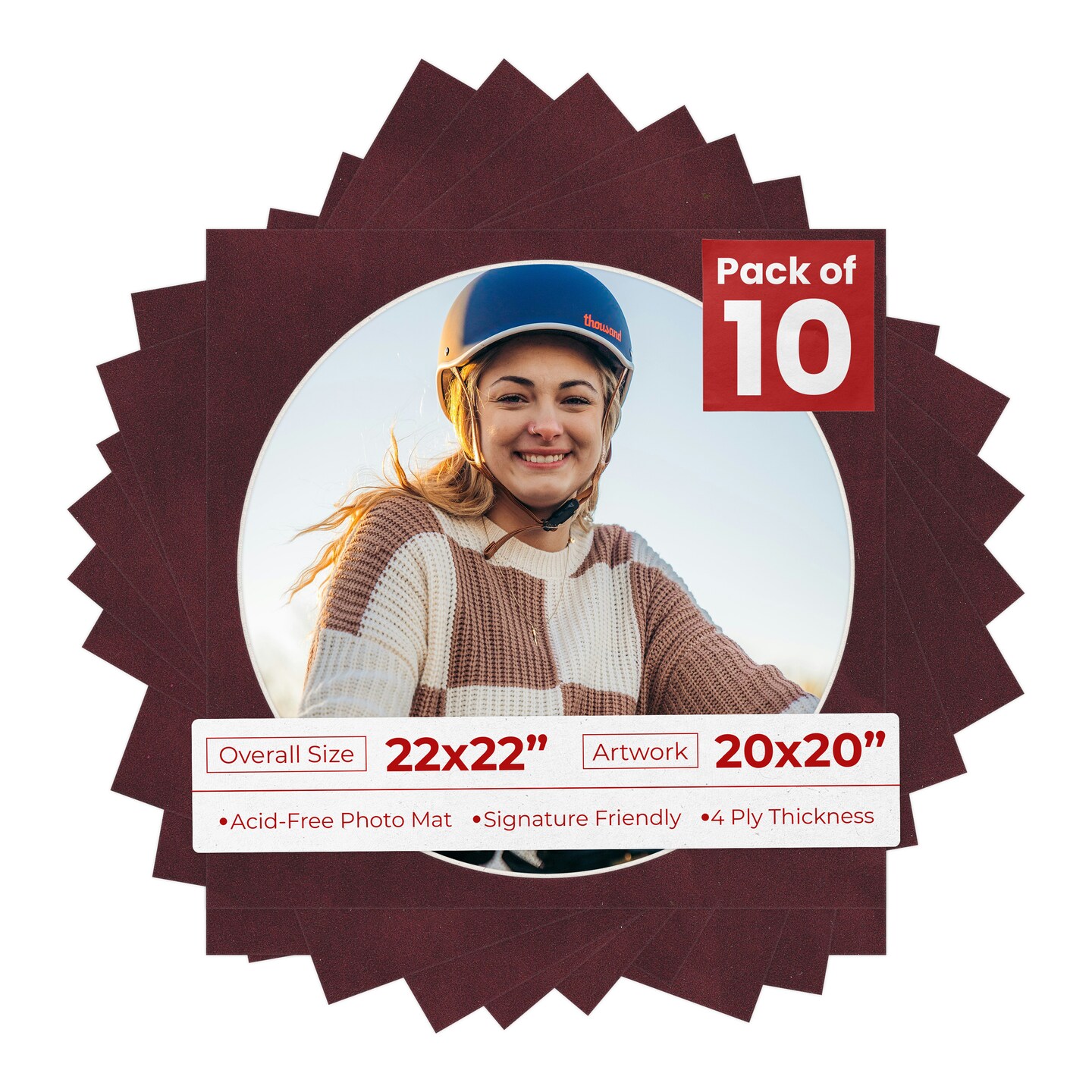 Dark Red Suede Mat Board for 22x22 Frames - Circle Opening for 20x20 Photos
