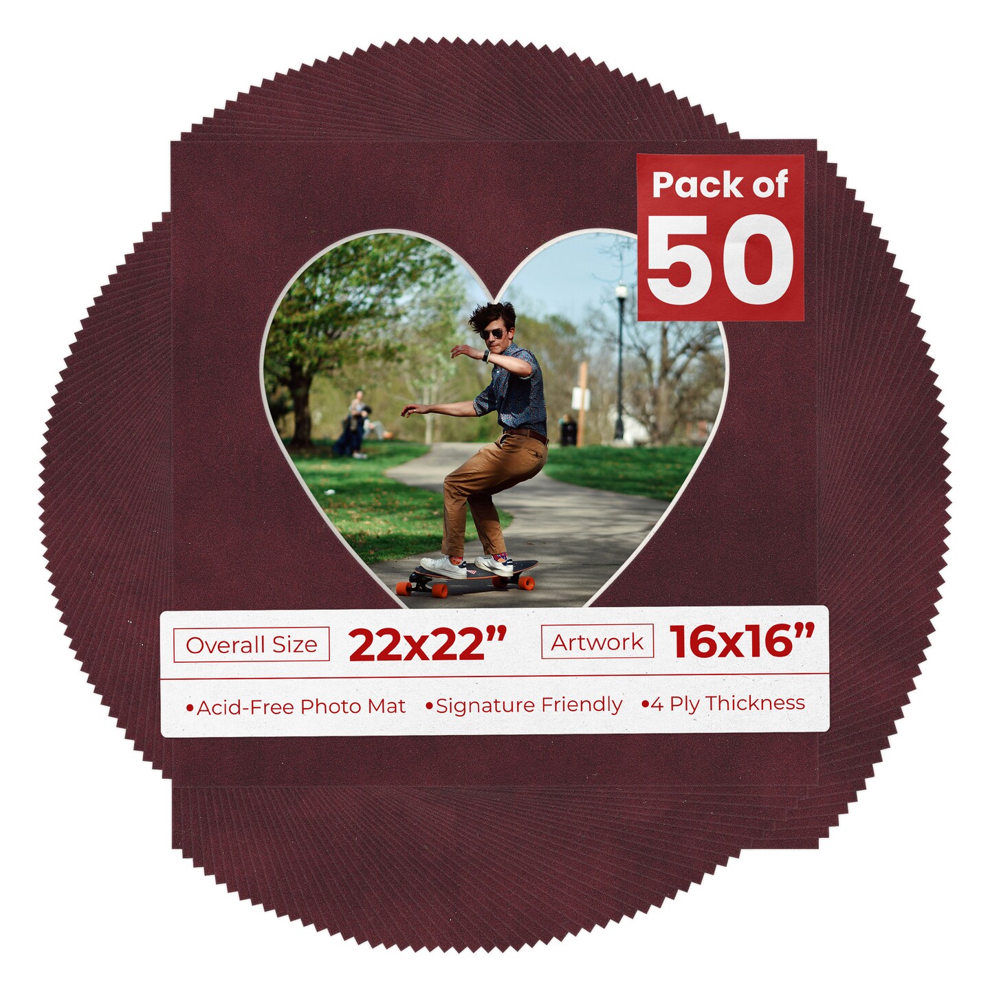 Dark Red Suede Mat Board for 22x22 Frames - Heart Opening for 16x16 Photos