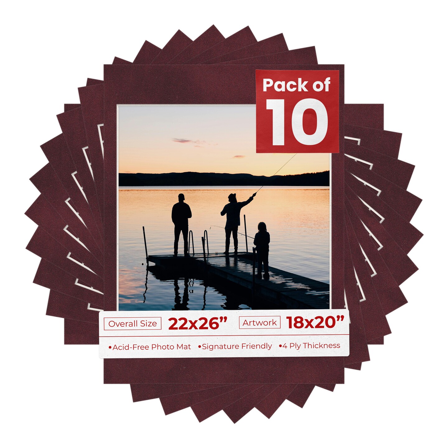 Dark Red Suede Mat Board for 22x26 Frames - Fits 18x20 Photos