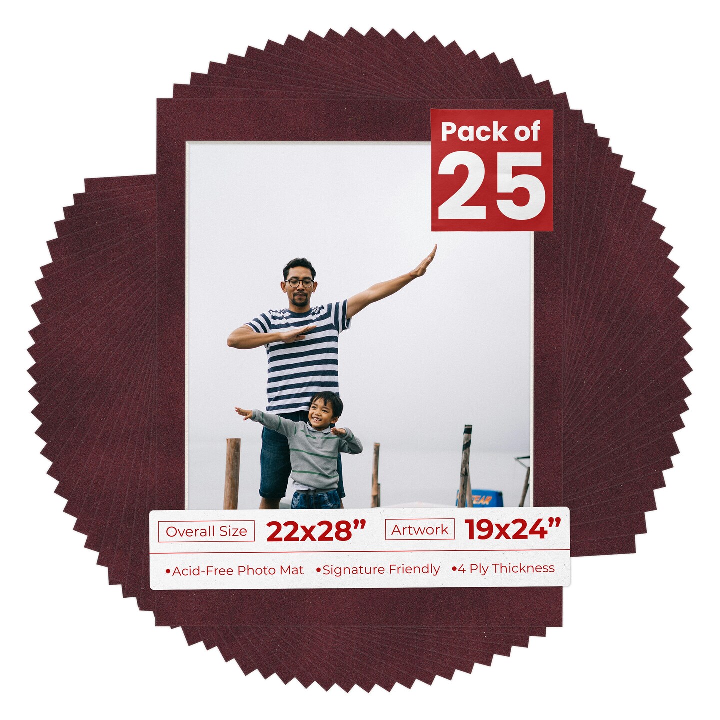 Dark Red Suede Mat Board for 22x28 Frames - Fits 19x24 Photos