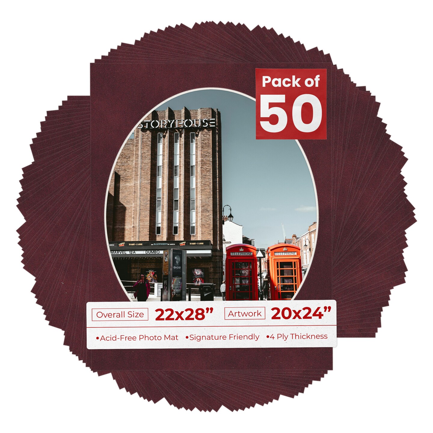 Dark Red Suede Mat Board for 22x28 Frames - Oval Opening for 20x24 Photos