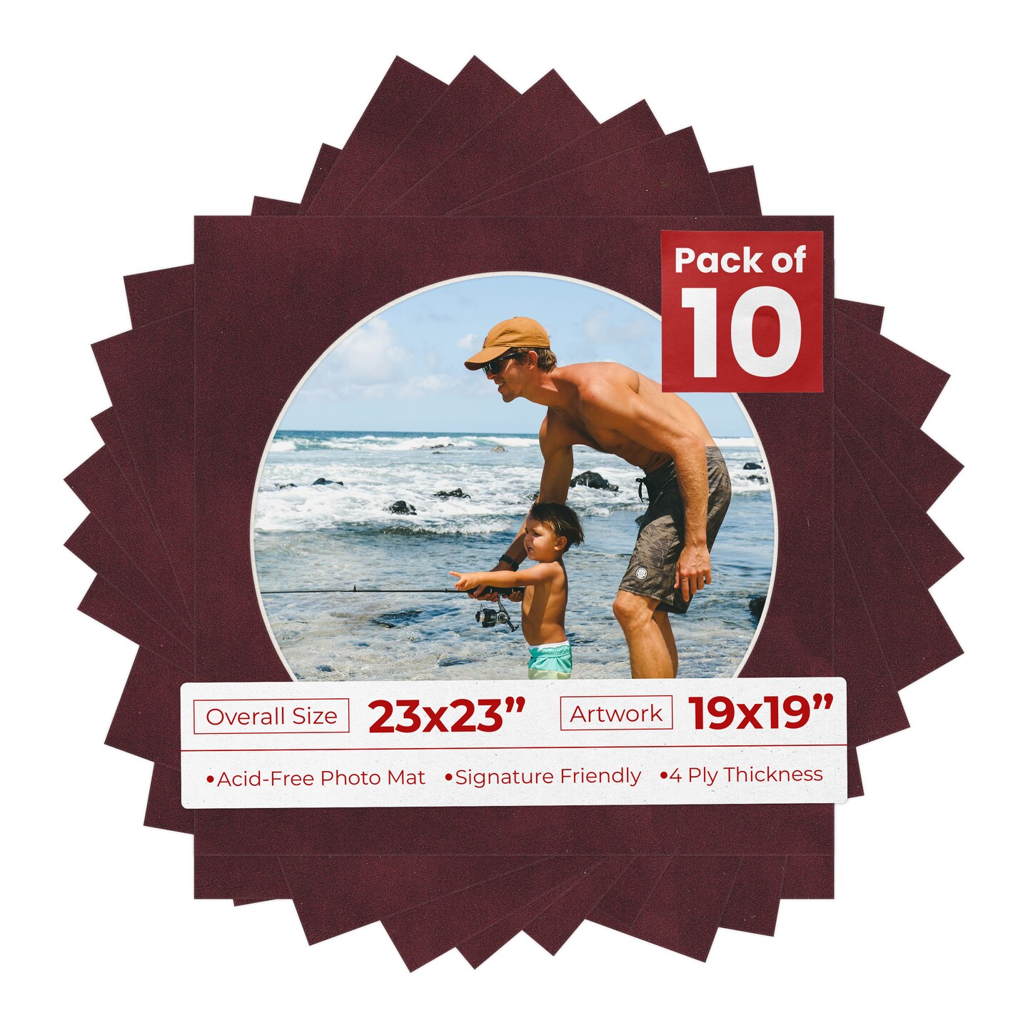 Dark Red Suede Mat Board for 23x23 Frames - Circle Opening for 19x19 Photos