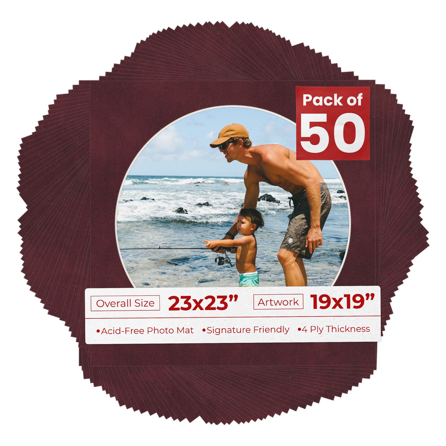 Dark Red Suede Mat Board for 23x23 Frames - Circle Opening for 19x19 Photos