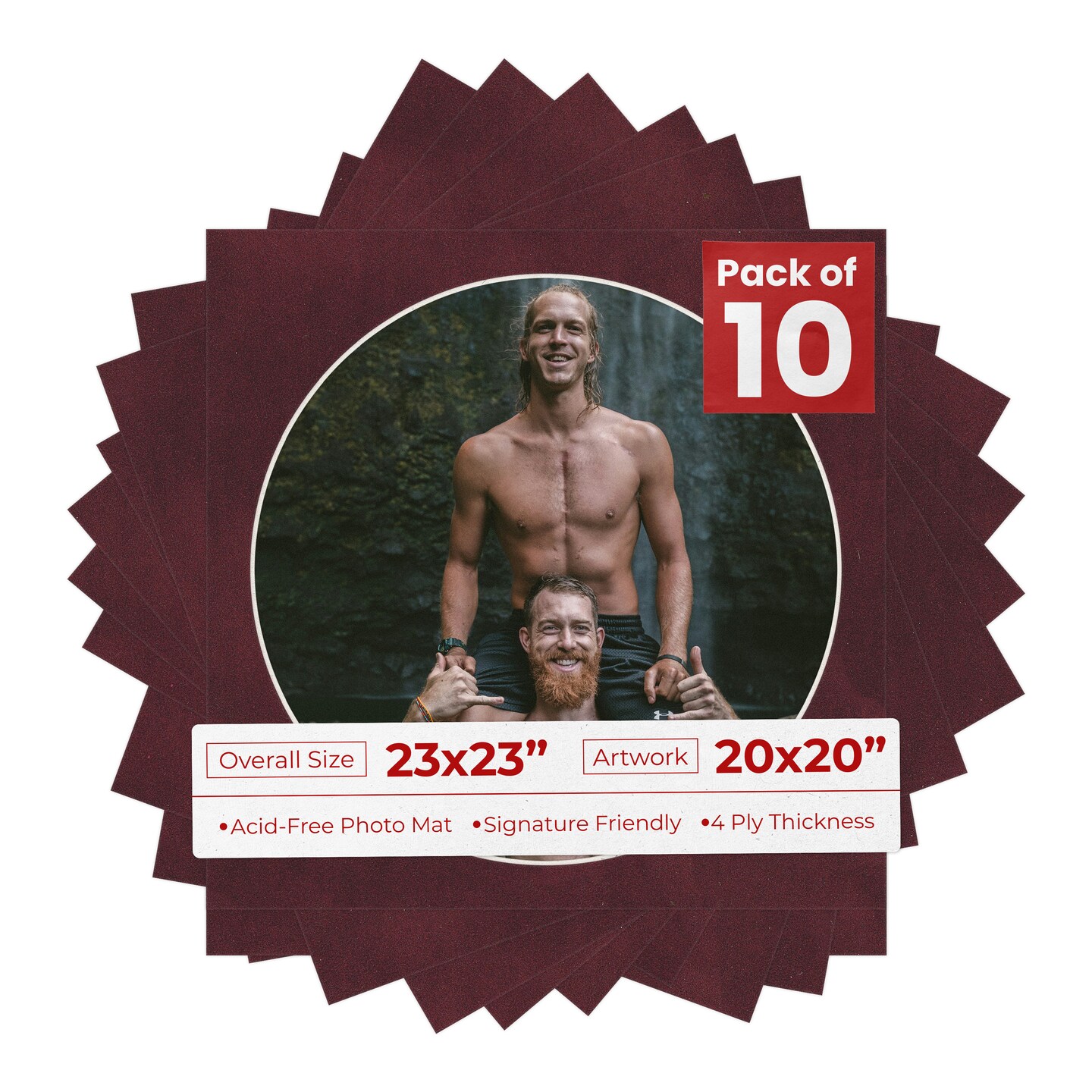 Dark Red Suede Mat Board for 23x23 Frames - Circle Opening for 20x20 Photos