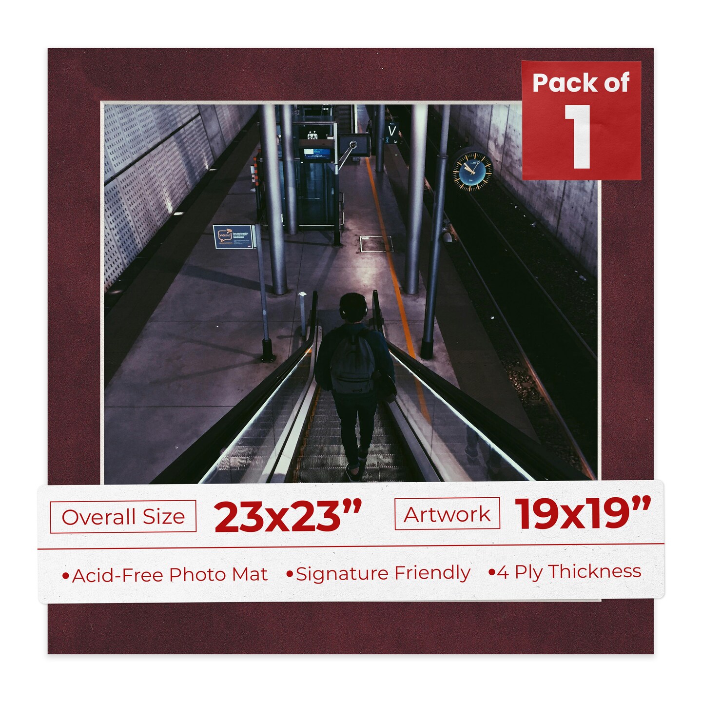 Dark Red Suede Mat Board for 23x23 Frames - Fits 19x19 Photos