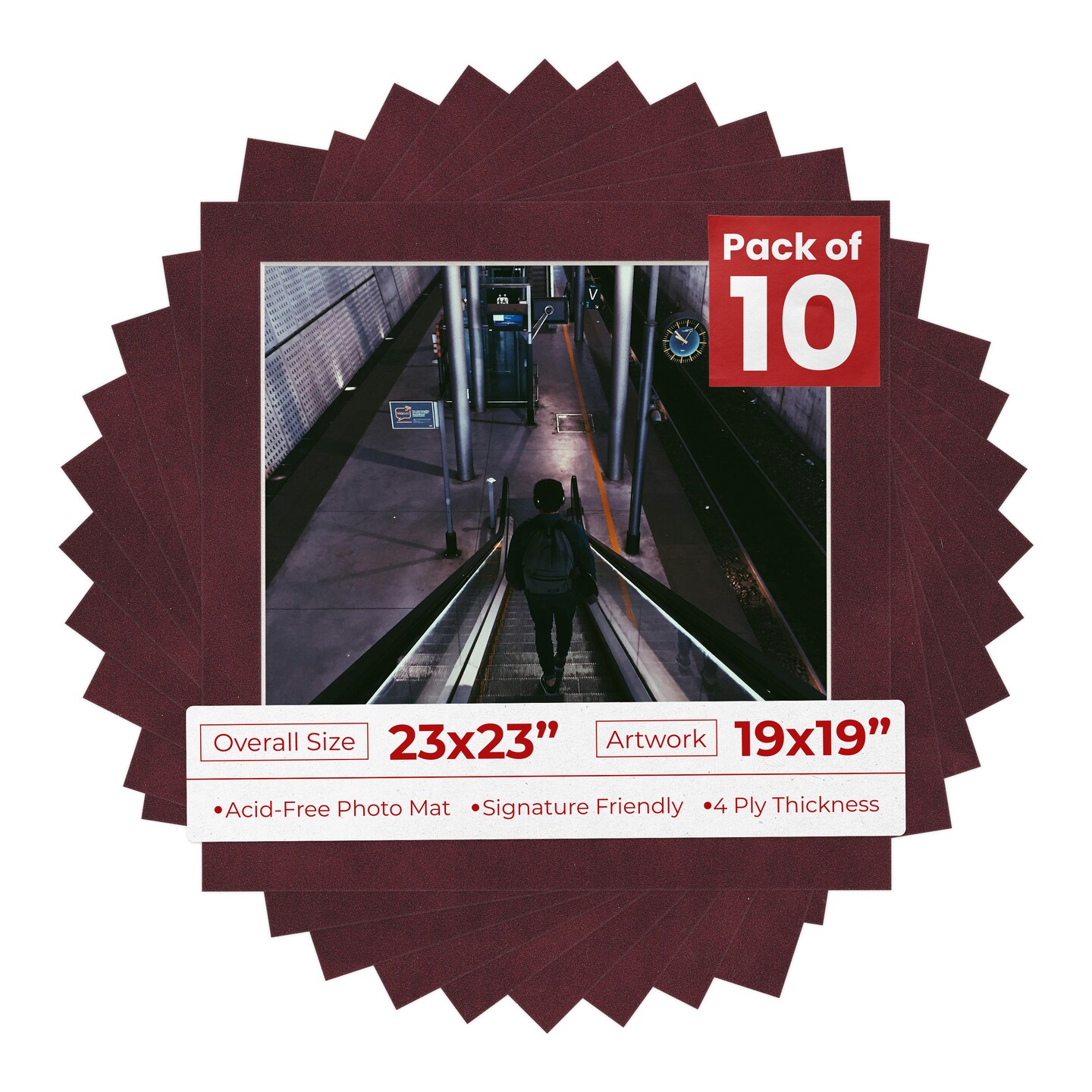 Dark Red Suede Mat Board for 23x23 Frames - Fits 19x19 Photos