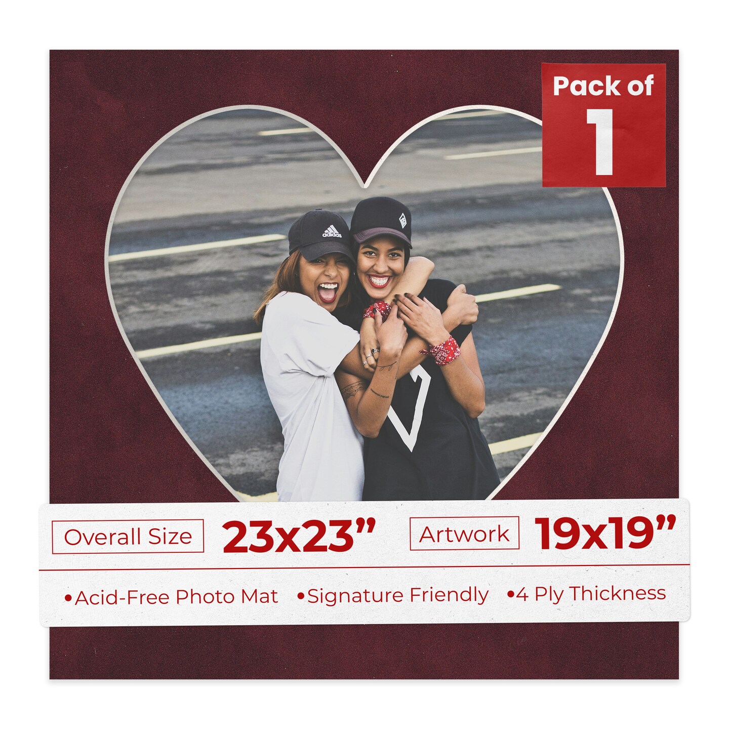 Dark Red Suede Mat Board for 23x23 Frames - Heart Opening for 19x19 Photos
