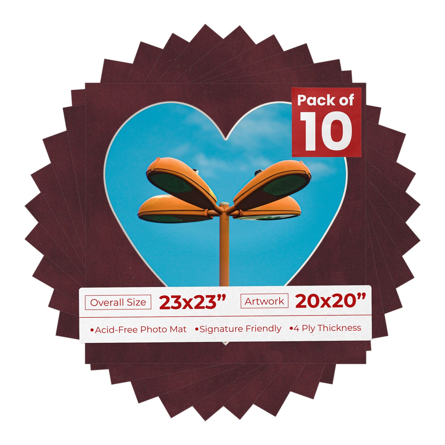 Dark Red Suede Mat Board for 23x23 Frames - Heart Opening for 20x20 Photos