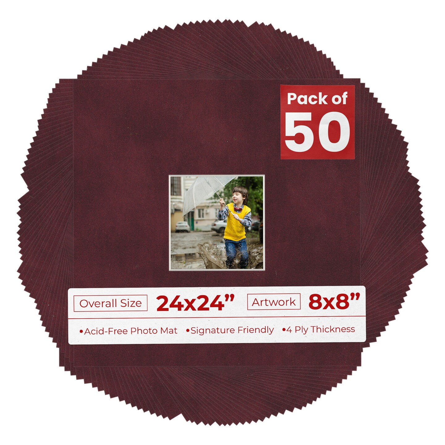 Dark Red Suede Mat Board for 24x24 Frames - Fits 8x8 Photos