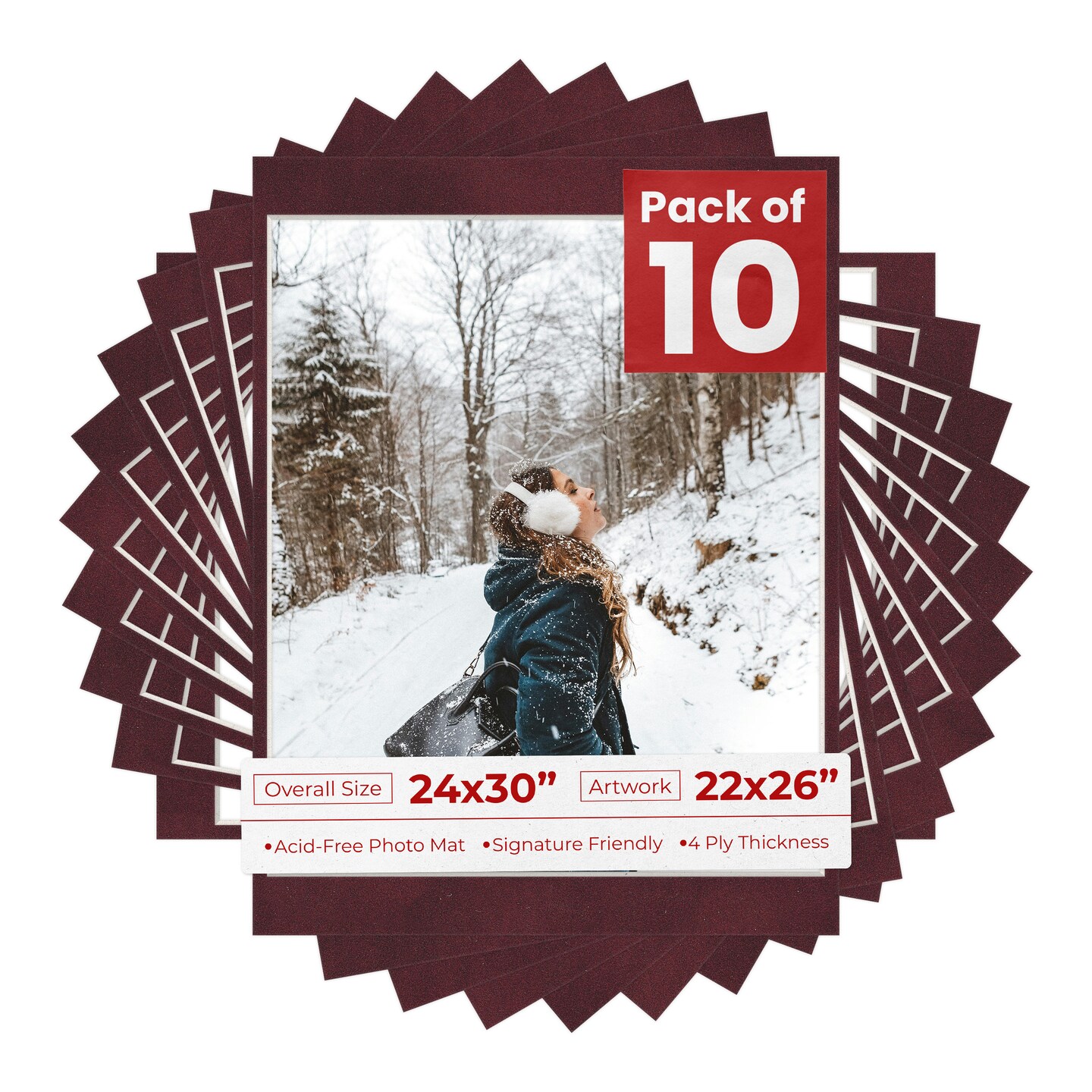 Dark Red Suede Mat Board for 24x30 Frames - Fits 22x26 Photos