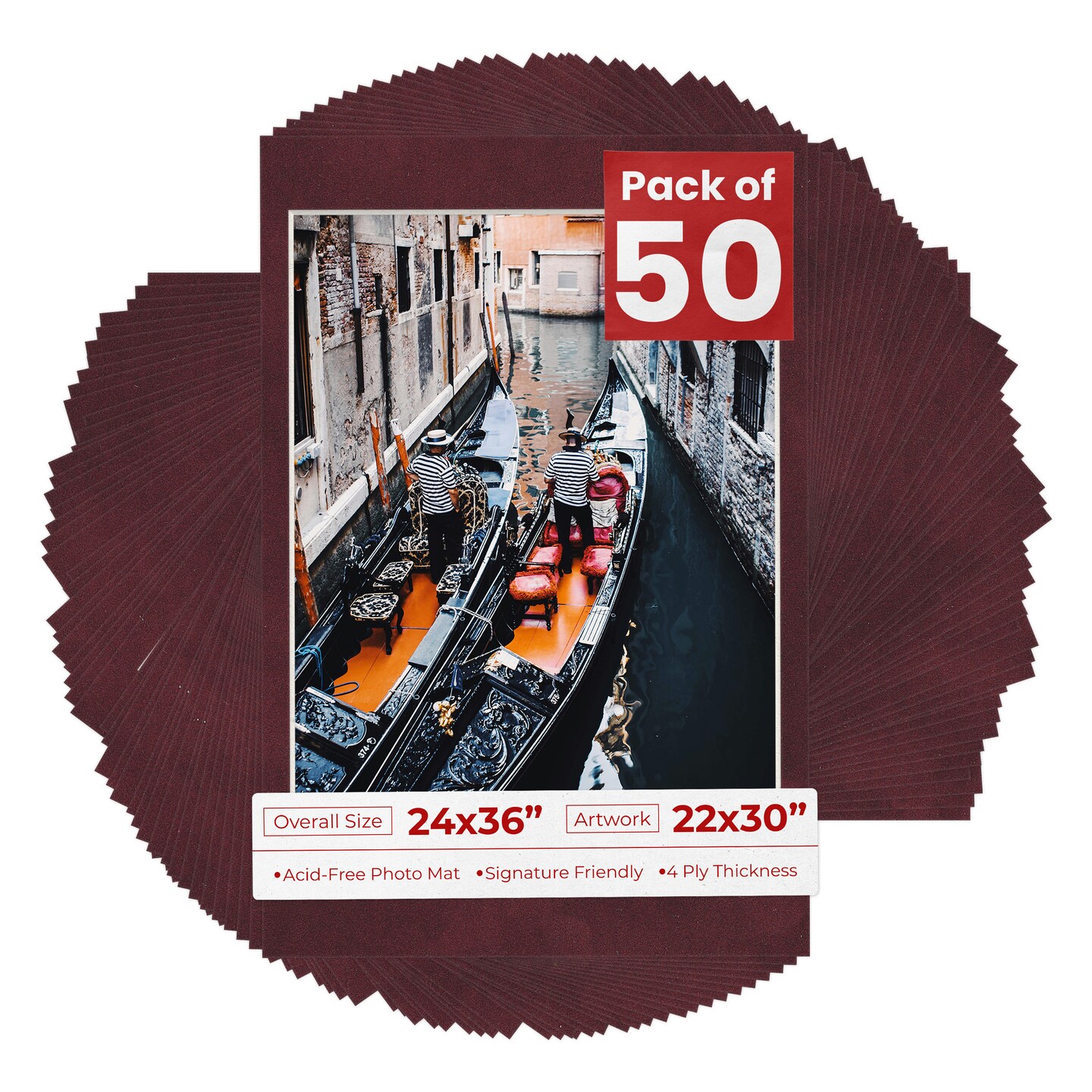 Dark Red Suede Mat Board for 24x36 Frames - Fits 22x30 Photos