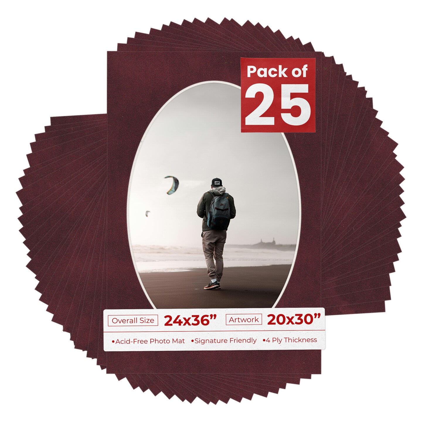 Dark Red Suede Mat Board for 24x36 Frames - Oval Opening for 20x30 Photos
