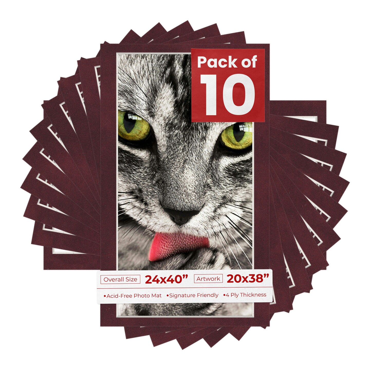 Dark Red Suede Mat Board for 24x40 Frames - Fits 20x38 Photos