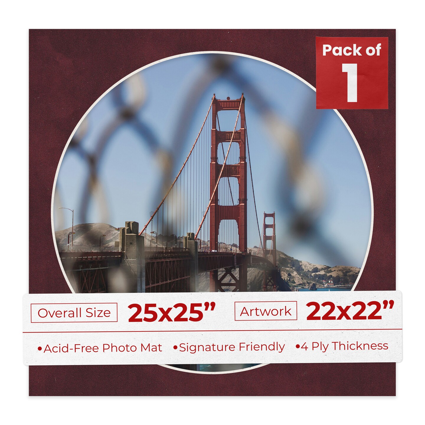Dark Red Suede Mat Board for 25x25 Frames - Circle Opening for 22x22 Photos