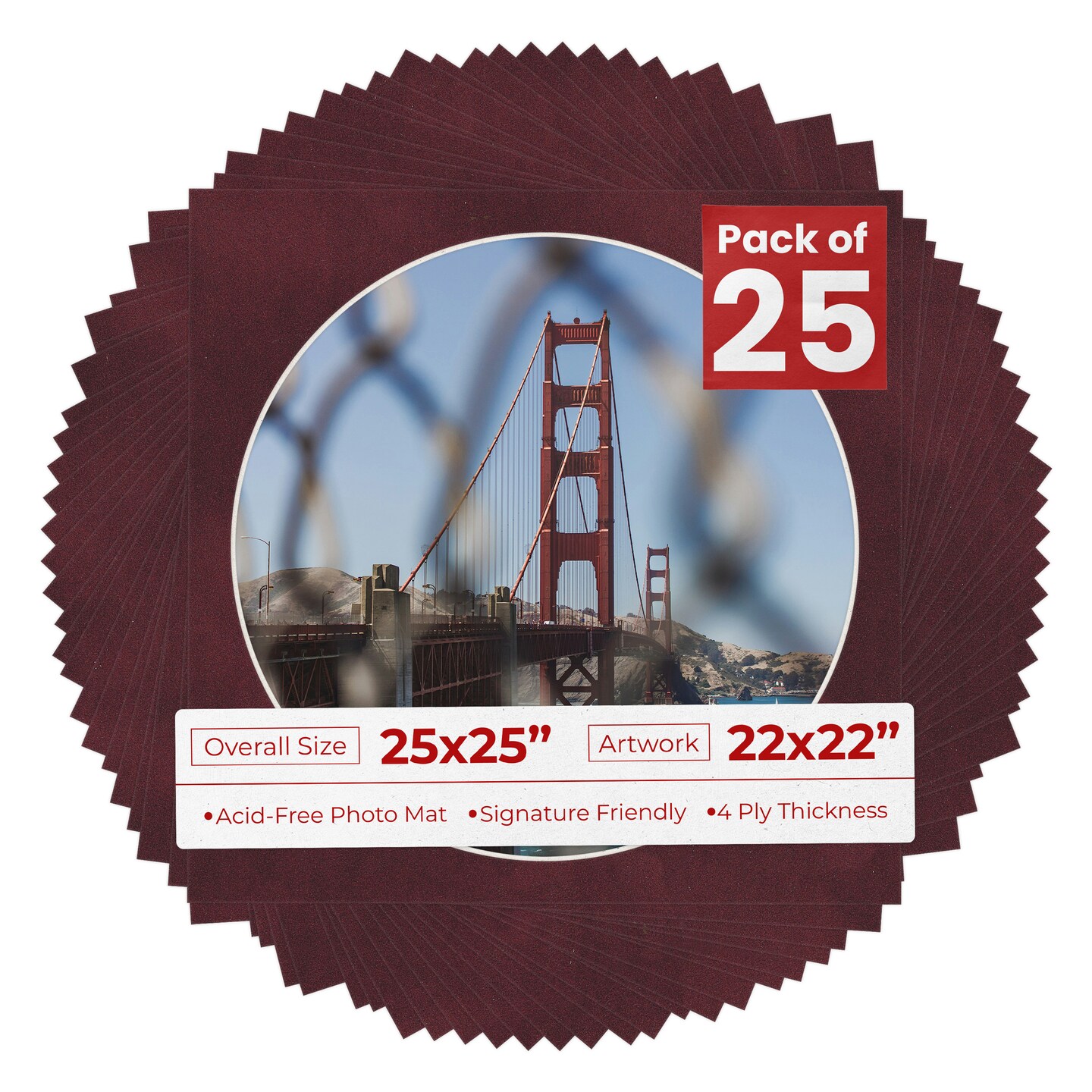 Dark Red Suede Mat Board for 25x25 Frames - Circle Opening for 22x22 Photos