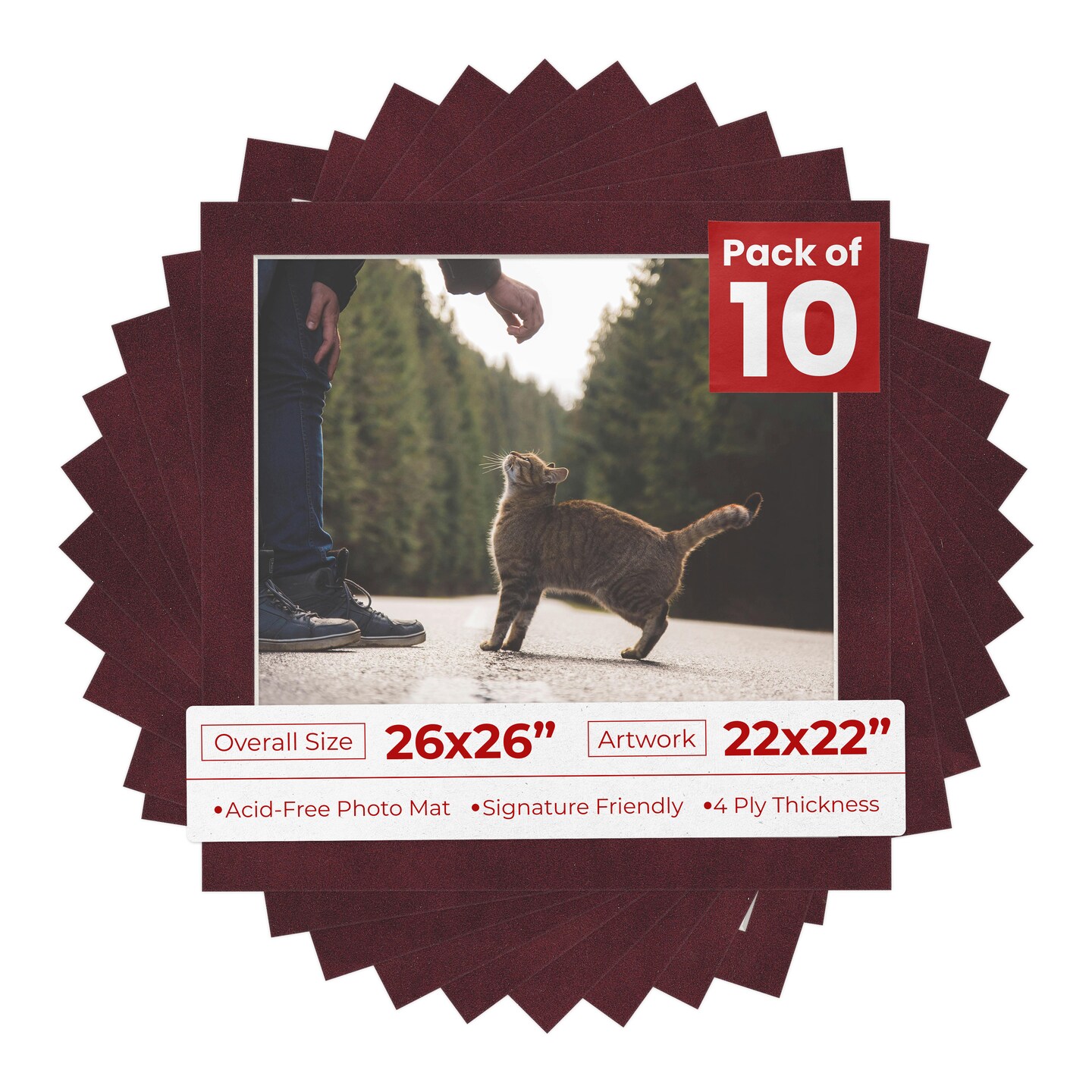 Dark Red Suede Mat Board for 26x26 Frames - Fits 22x22 Photos