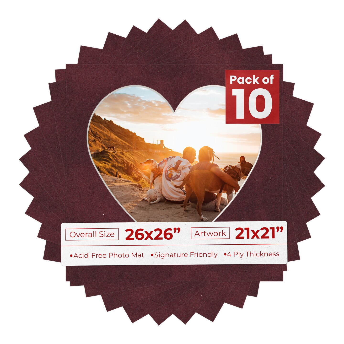 Dark Red Suede Mat Board for 26x26 Frames - Heart Opening for 21x21 Photos