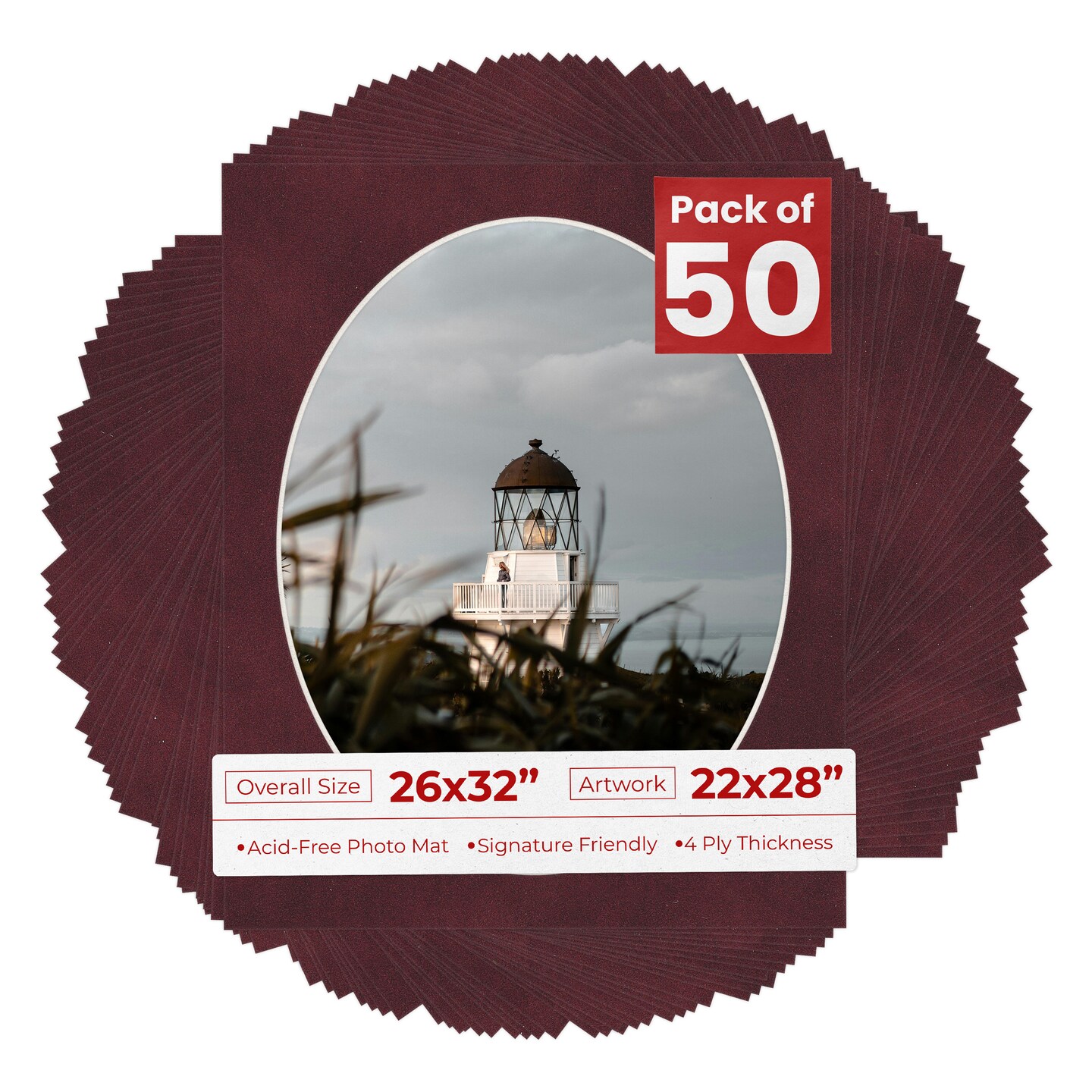 Dark Red Suede Mat Board for 26x32 Frames - Oval Opening for 22x28 Photos