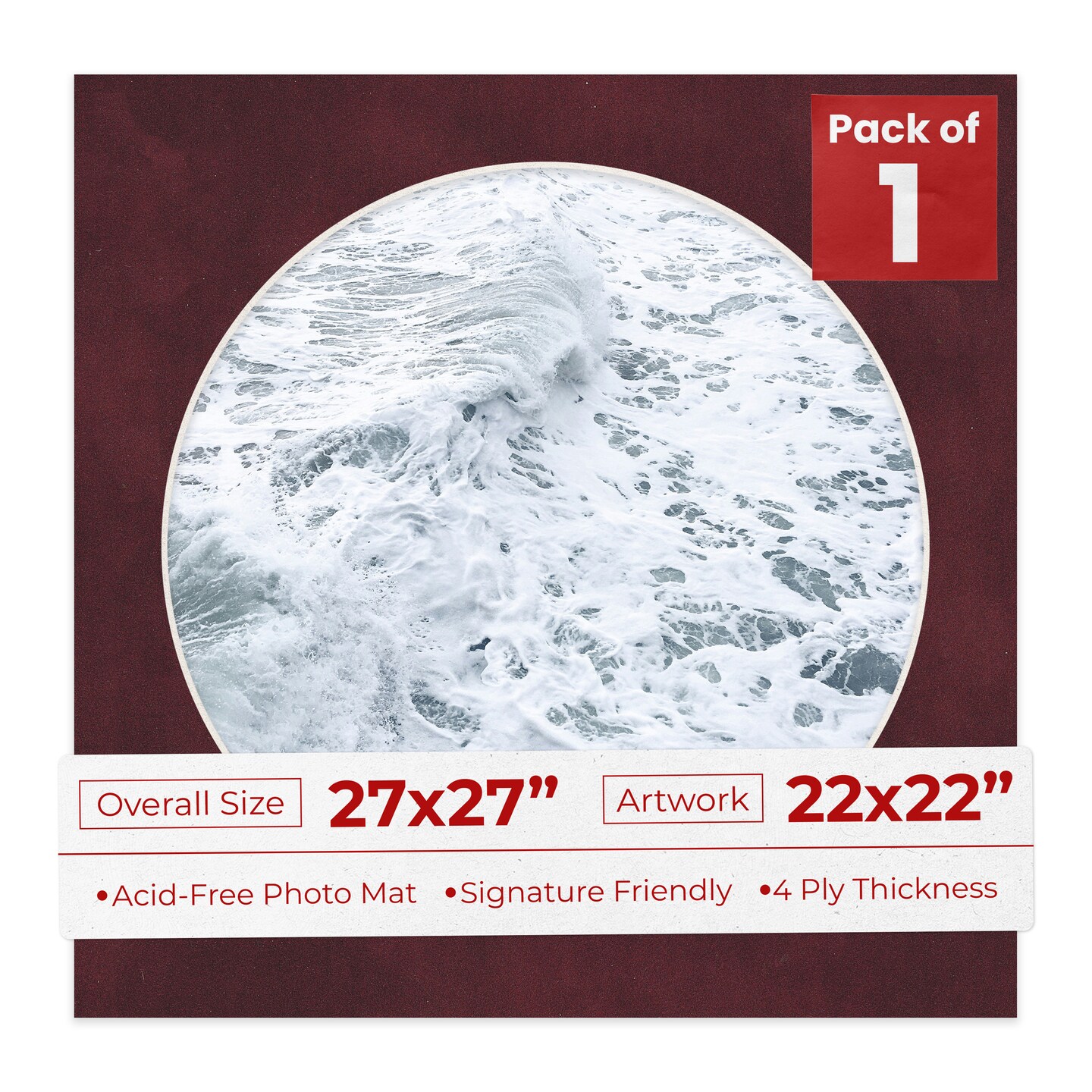 Dark Red Suede Mat Board for 27x27 Frames - Circle Opening for 22x22 Photos
