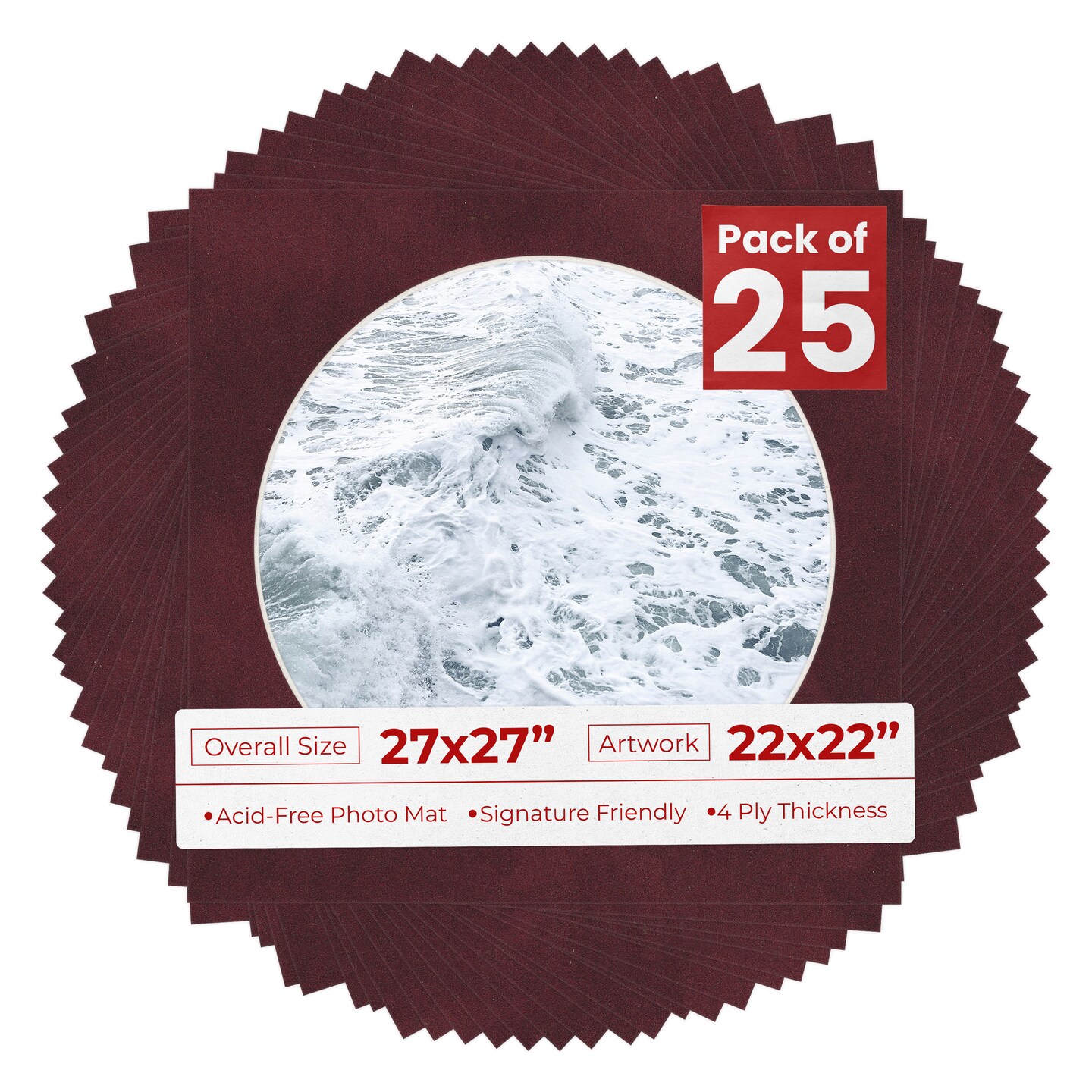 Dark Red Suede Mat Board for 27x27 Frames - Circle Opening for 22x22 Photos