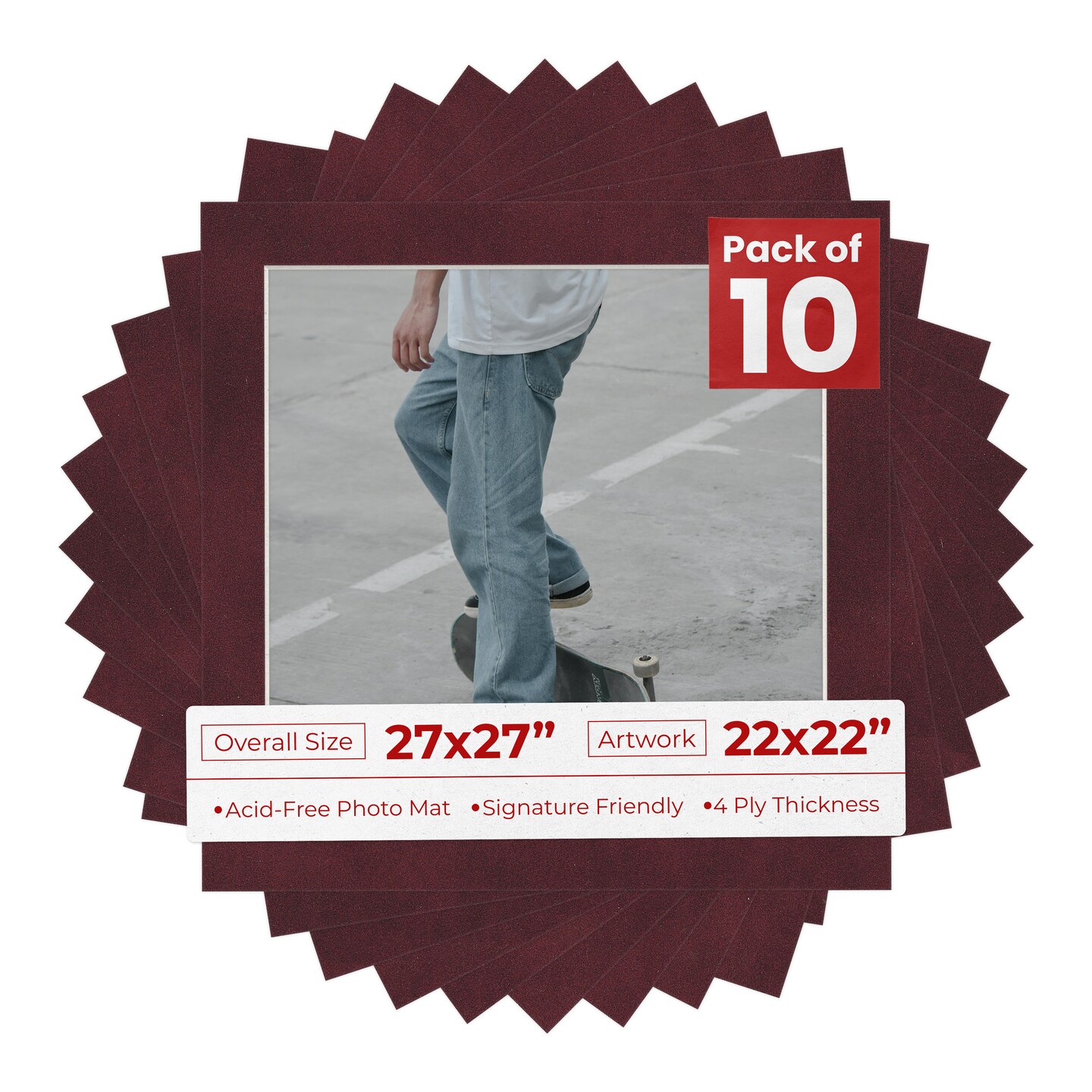 Dark Red Suede Mat Board for 27x27 Frames - Fits 22x22 Photos