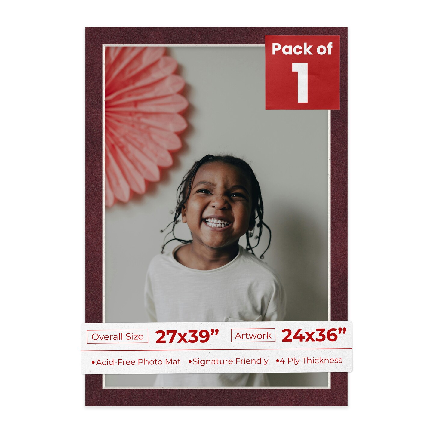 Dark Red Suede Mat Board for 27x39 Frames - Fits 24x36 Photos