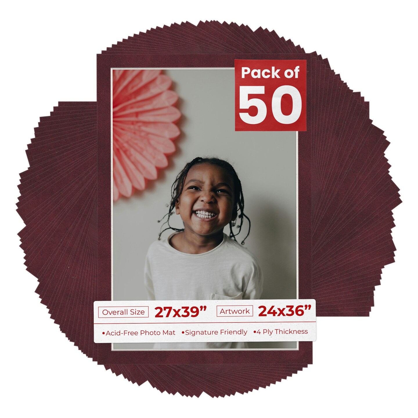 Dark Red Suede Mat Board for 27x39 Frames - Fits 24x36 Photos