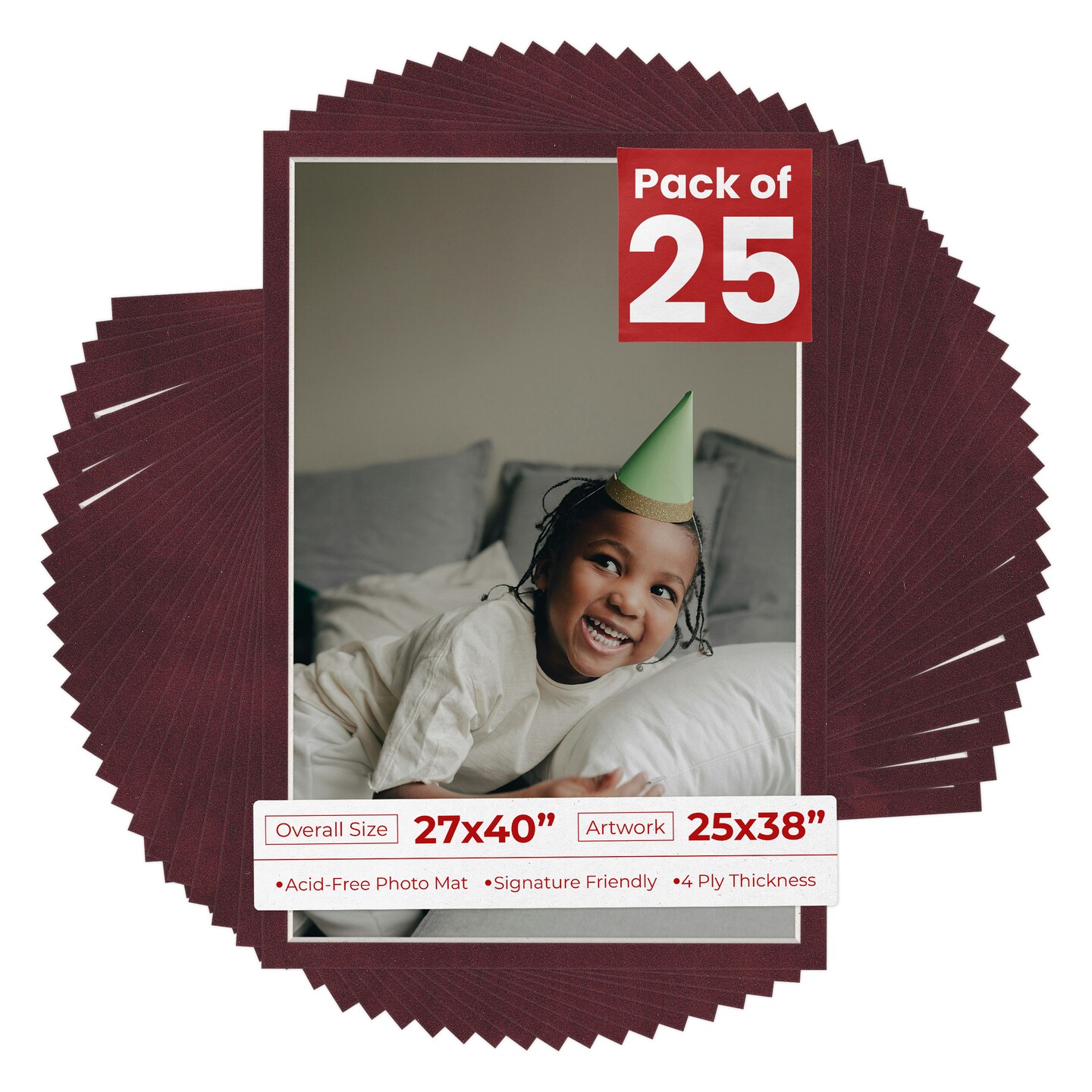 Dark Red Suede Mat Board for 27x40 Frames - Fits 25x38 Photos