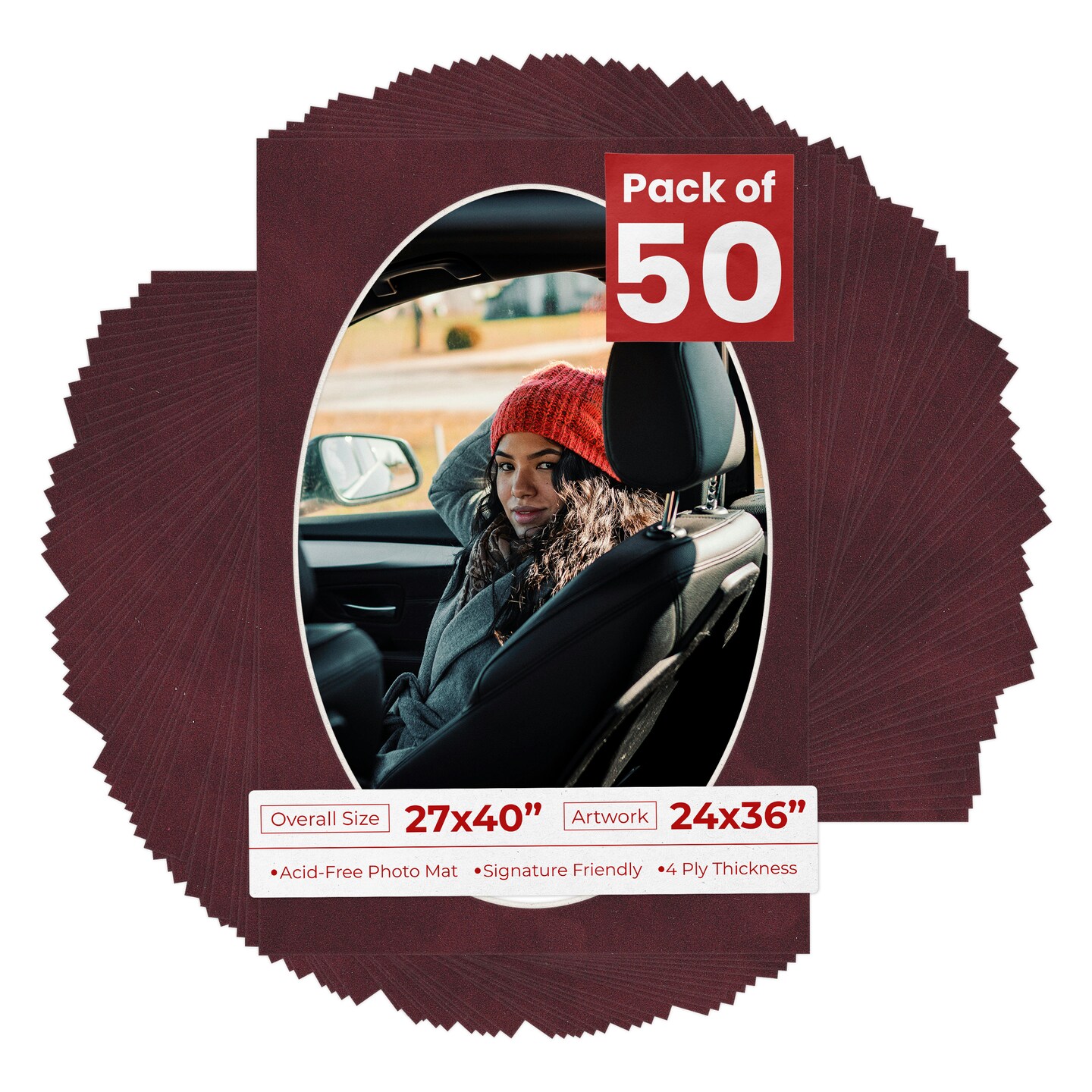 Dark Red Suede Mat Board for 27x40 Frames - Oval Opening for 24x36 Photos
